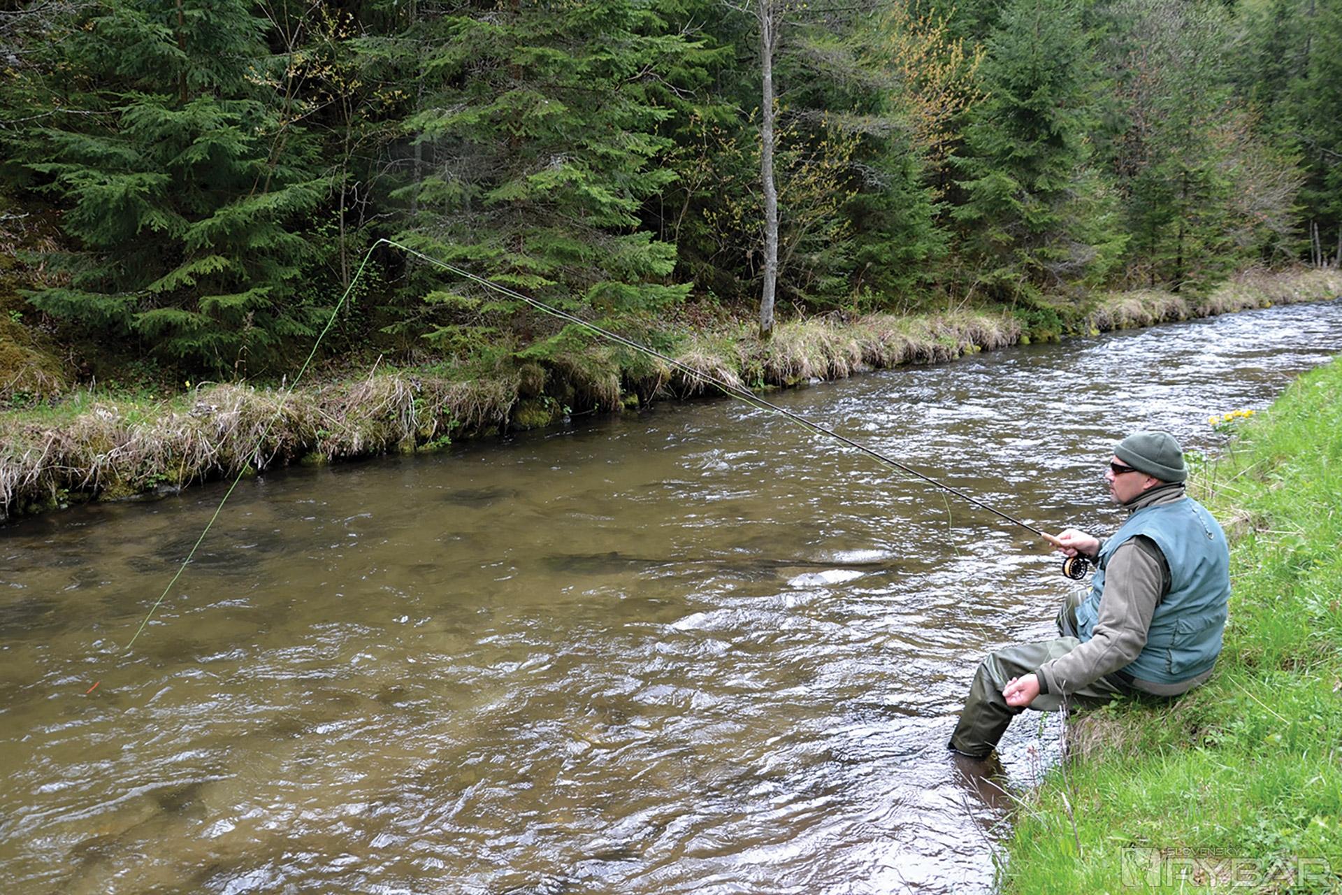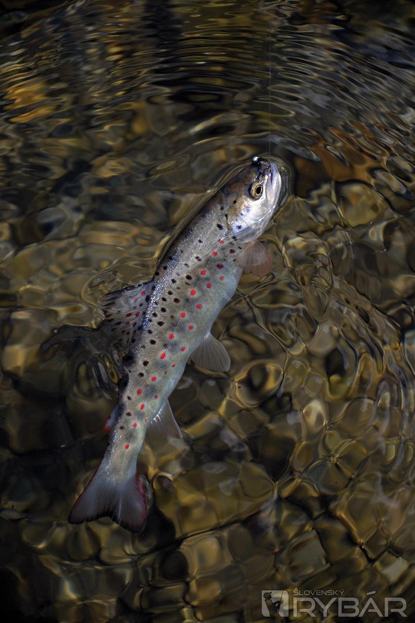 Na neveľkom parkovisku pod vysokým bralom zostavujem prút a na tenký fluorocarbon viažem dve zaťažené mušky. Brodím do studenej, rýchlo tečúcej vody. Prvé hody smerujem k zatopenej vrbine a na moje počudovanie mám okamžite záber. Zdolávam menšieho pstruha potočného. Ďalší hod znamená ďalšiu rybu, nasledujúci dokonca dve naraz. Malé háčiky bez protihrotu držia ako prilepené, zároveň sa z nich ryby po zdolaní ľahko uvoľňujú.