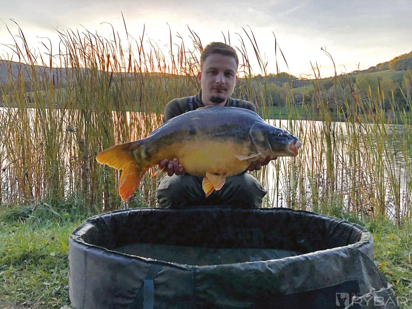Konečne sadám do kresla a užívam si krásu prírody. Noc bola pokojná, bez záberu. Pár minút pred piatou hodinou ráno mám záber na jednom z prútov. Po peknom súboji mám na brehu ikernačku s hmotnosťou 14 kg. Opatrne ju vraciam vode. V ten istý večer sa vraciame znovu na naše miesto. Pobyt pri vode nám spríjemní záber. Lukáš ťahá kapra a počas jeho zdolávačky mám taktiež jazdu. Obaja si užívame zdolávanie. Po chvíli obaja pózujeme s krásnym double na brehu. Lukášov kapor vážil 14 kg a môj 14,5 kg. Títo dlháni nás oboch potešili. V tú noc si každý z nás chytil rybu. Počas nasledujúcich vychádzok som bol taktiež úspešný. Podarilo sa mi uloviť kapry s hmotnosťou 11,5 kg a 16,5 kg. K tomu ešte zopár menších kaprov a amurov. Zlom nastal v polovici októbra.
