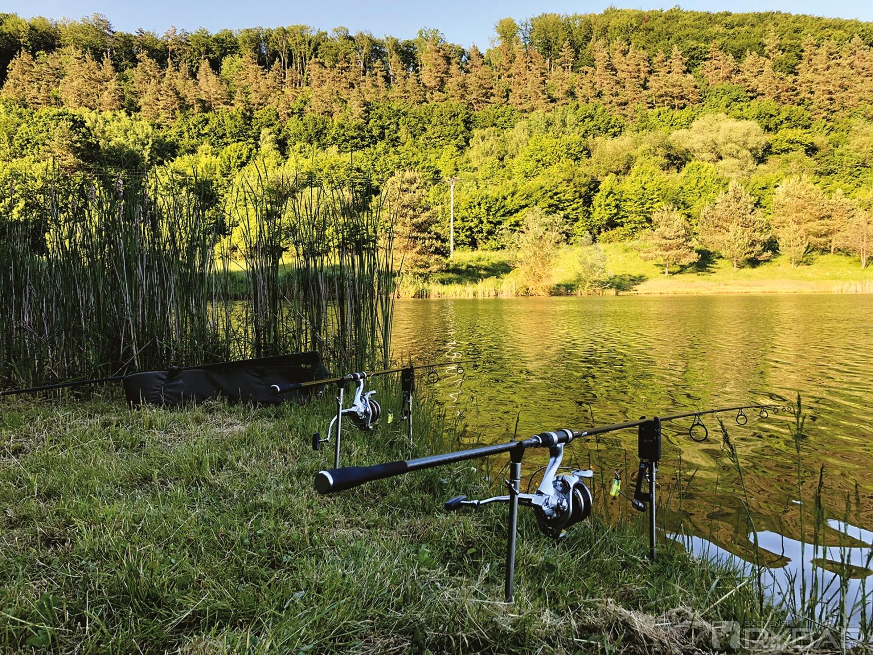 Používam prúty s dĺžkou 12 ft a gramážou 3,25 lb v kombinácii s navijakmi Shimano Ultegra XSC. Túto zostavu mám už niekoľko rokov a som s ňou nadmieru spokojný. Na navijakoch mám navinutý kmeňový vlasec s priemerom 0,30 mm. Na tejto vode šokovku nepoužívam, pretože si to podmienky nevyžadujú.