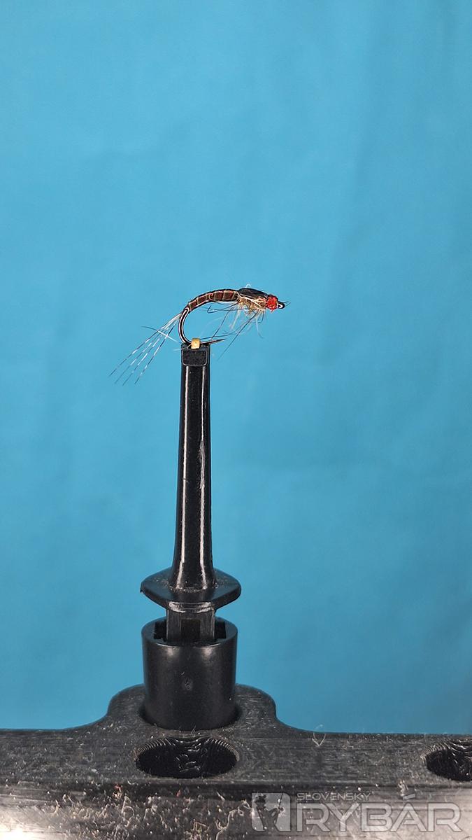 Menšia muška, ktorá má pripomínať malého jazerného pakomára s úplne decentným spúšťačom pri hlavičke. Na pstruhových rybníkoch s obsádkou starej ryby chytám na plávajúcu šnúru s pomalinkým sťahovaním. Na jazerách s napúšťaným dúhakom, ktorý už je opatrnejší, používam na systém plavák alebo, ako je to známe medzi muškármi, ako „pampeliška“.