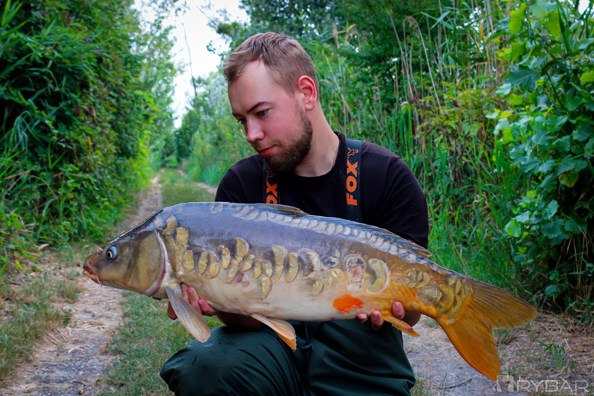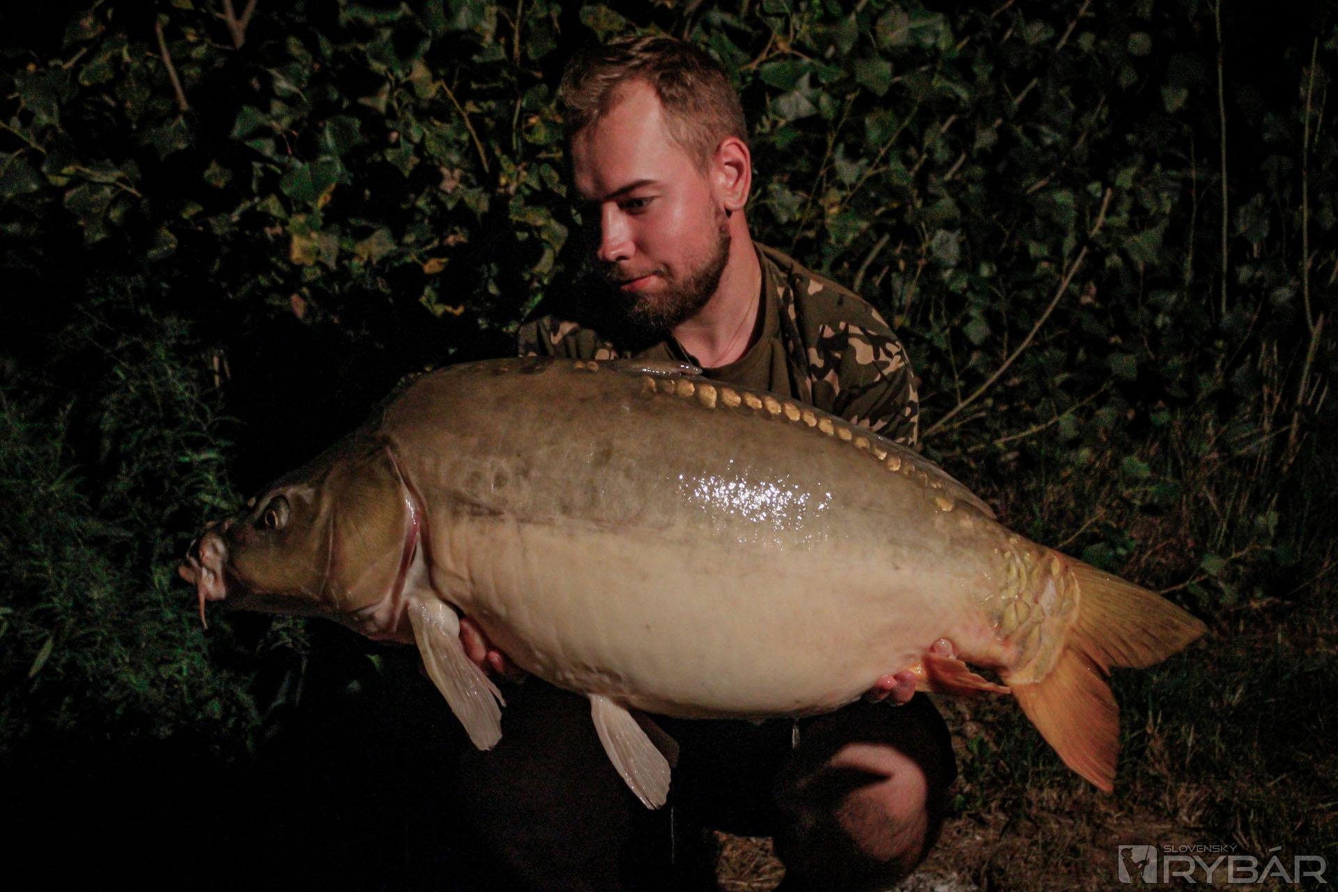 Po hodinke prvý záber z miesta č. 16, ale o rybku som prišiel. Nevadí, ideme ďalej. Po druhej spadnutej rybke som zmenil montáž a rybu sa mi už podarilo zdolať. Prvý fešák v podložke – cca 8 kg. Po tejto rybke sa spustil strašný kolotoč záberov a hneď prvý deň sa mi podarilo zdolať parádnu šupinu cez 15 kg! Za asistencie mojej priateľky sme rybku rýchlo zdokumentovali a pustili. Mali sme pred sebou prvú noc a tá bola „že masaker celkovo“, asi 10 záberov dokopy z oboch miest. Za zmienku stojí lysec, ktorý si zobol 2 × 20 mm NutraKrill, s hmotnosťou cez 14 kg. Nadránom som stiahol prúty, aby sme sa trošku vyspali a vedeli fungovať cez deň.
