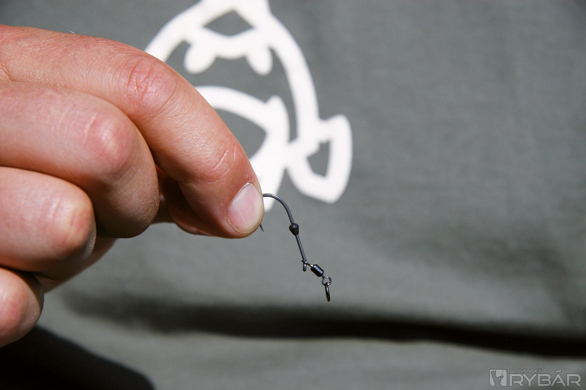 Na rameno háčika Fox Armapoint LS, veľkosť 5, navlečte mikroobratlík s krúžkom veľkosti 11. Dôležité je, aby ste navliekli samotný obratlík, nie krúžok.