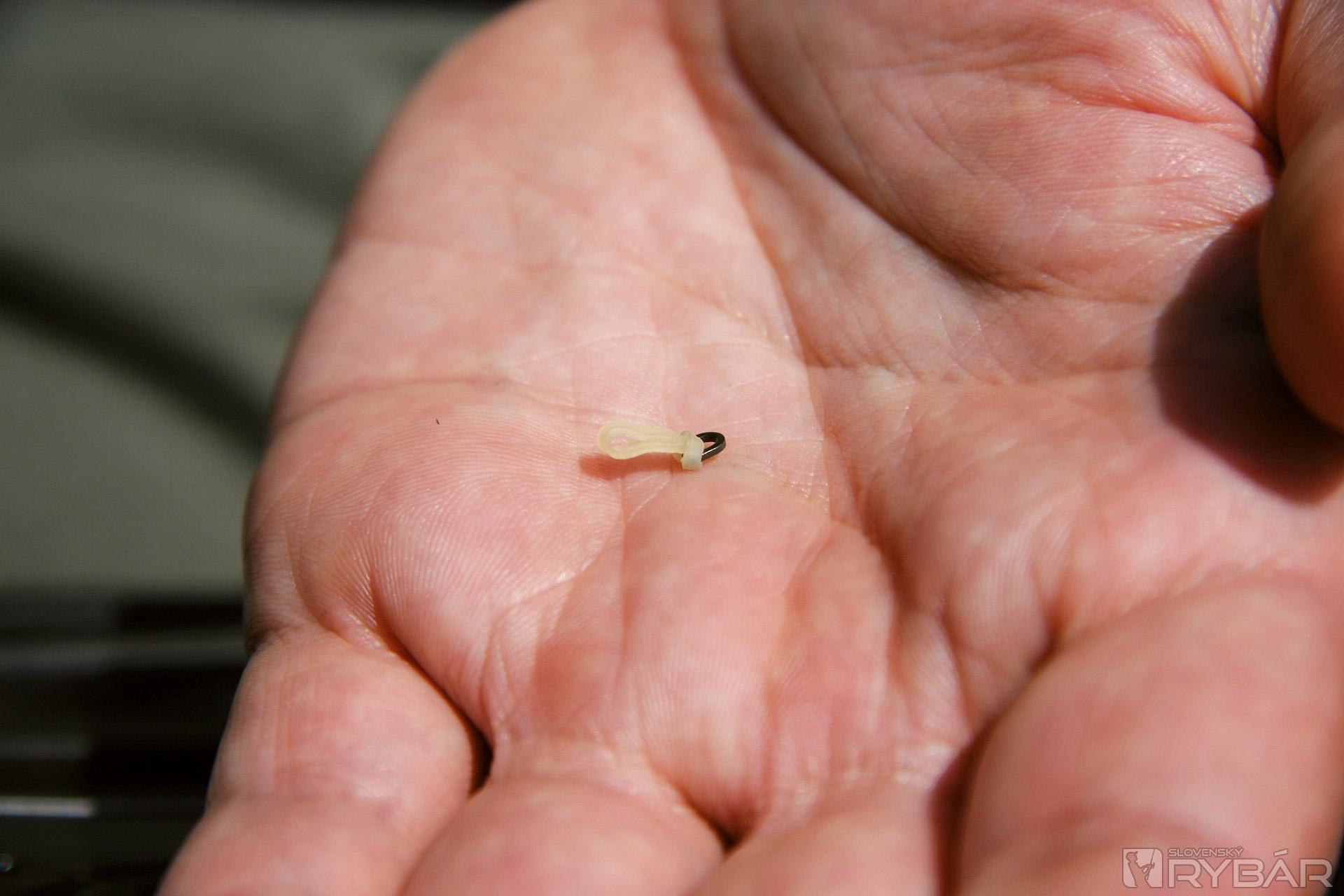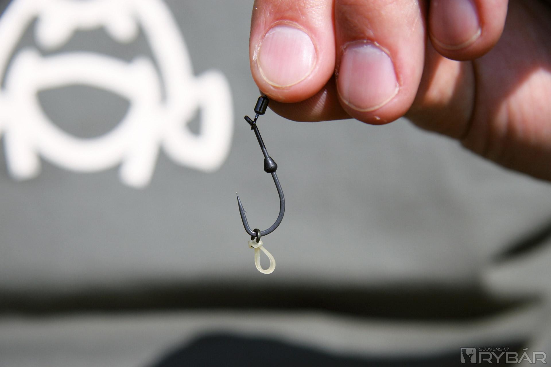 Na teflonový rig krúžok navlečte pomocou boiliesovej ihly nástrahovú gumičku (Bait bands). Na gumu môžete neskôr upevniť vašu nástrahu.