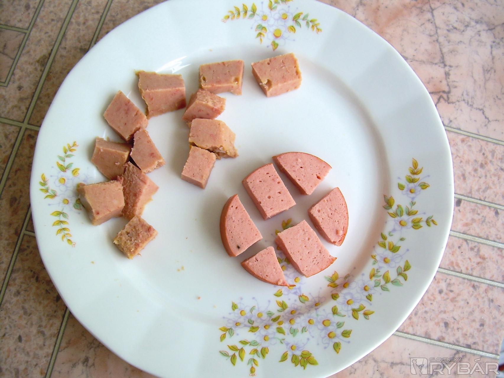 Príprava všetkých týchto nástrah spočíva v ich nakrájaní na rôzne veľké kocky, alebo hranolčeky, veľkosť ktorých závisí od veľkosti používaného háčika. Avšak ako najmenšie by som dával kocky asi tak 1 cm veľké, ktoré napichneme na háčiky veľkosti č. 10. Hranolčeky môžu byť asi tak 2 - 3 cm dlhé. Hrúbka závisí od toho, z čoho sú narezané. Pri párkoch to môže byť pozdĺžne rozrezanie na polovicu, alebo aj na štvrtiny; ale tie sú už potom príliš krehké a rýchlo odpadávajú. Lepšie bude, ak ich narežeme na kolieska hrubé asi 1 cm a tie potom nastražíme.