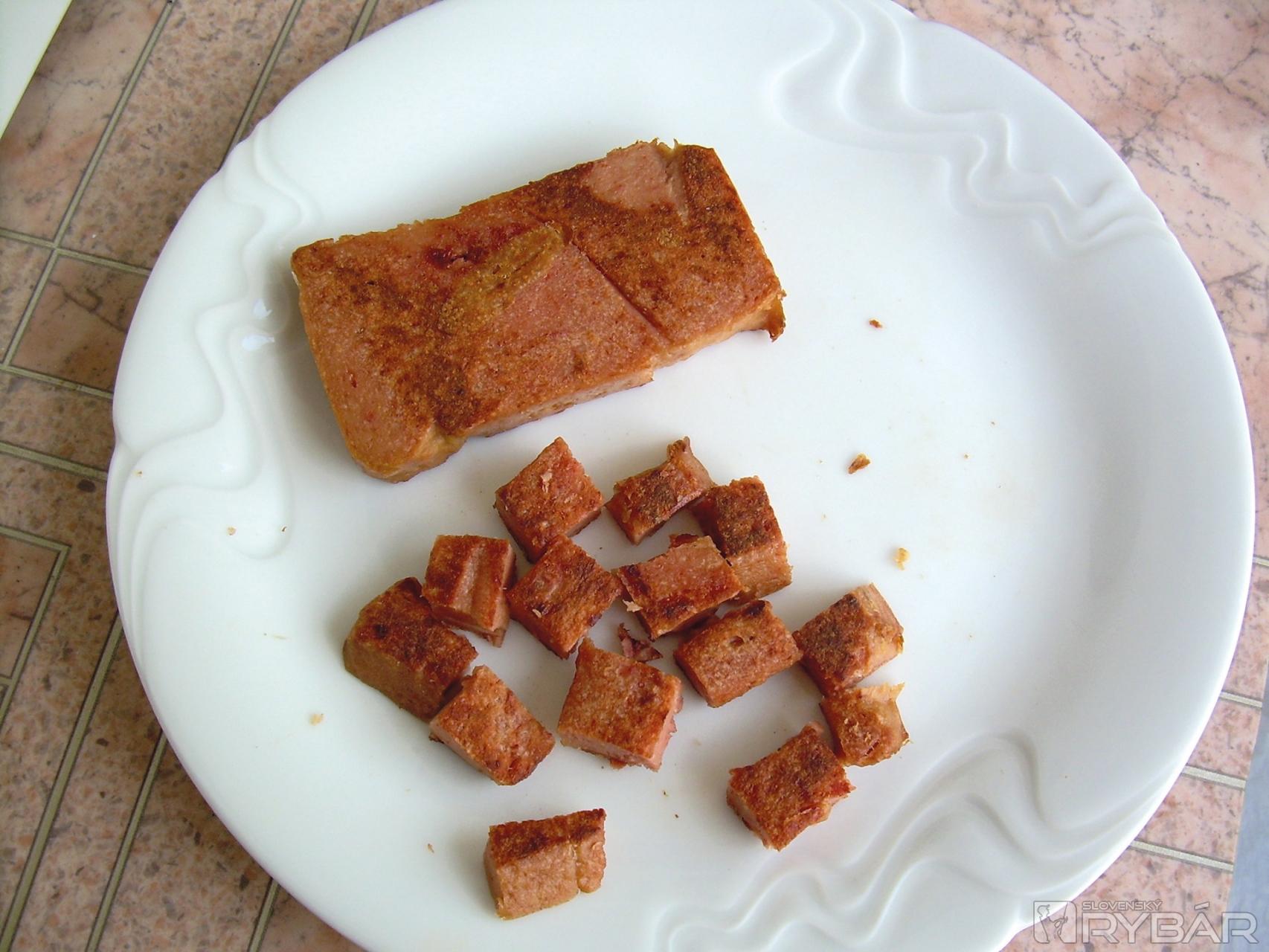 Lunch meat môžeme vykrojiť vykrajovačom jadrovníkov z jabĺk a tie potom pokrájame na menšie kusy. Aby lepšie držali na háčiku, môžeme ich trochu opiecť na panvici s trochou oleja, alebo aj len tak, nasucho. Nič nepokazíme, ak ich na panvici poprášime čiernym korením, alebo aj paprikou, čím im dodáme výraznejšiu a pre ryby lákavejšiu arómu.