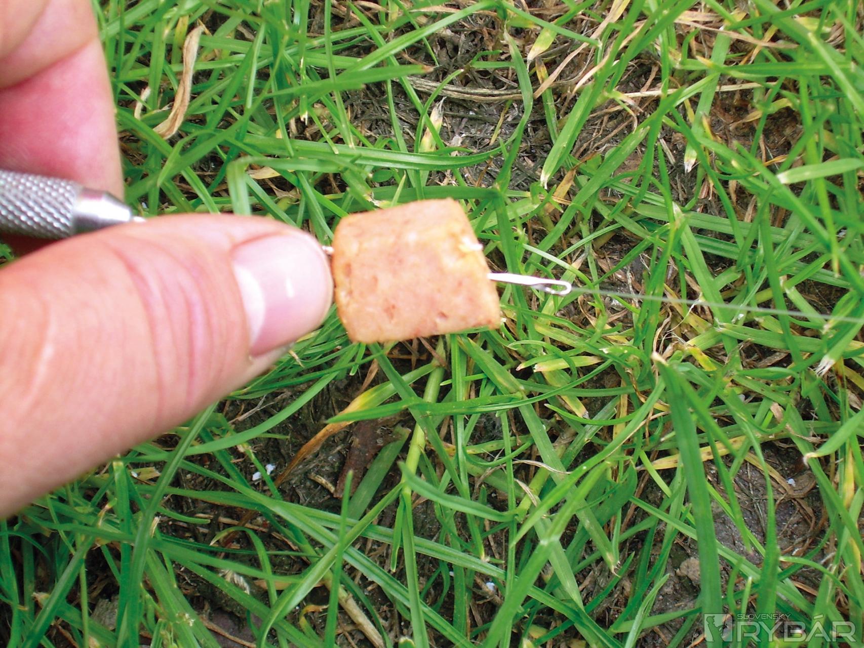 Lenže na použitie tejto nástrahy môže prísť spontánne na celodennej rybačke a tam väčšinou nemáme možnosť si opiecť tieto jemné nástrahy. Aj tu však existuje pomoc. Všetko je o tom, ako ich nastražíme. Väčšinou pri prevliekaní oblúčika háčika cez nástrahu vznikne väčší otvor ako je priemer háčika a nástraha potom na ňom poletuje hore dolu a ryby ju potom aj ľahšie strhnú.