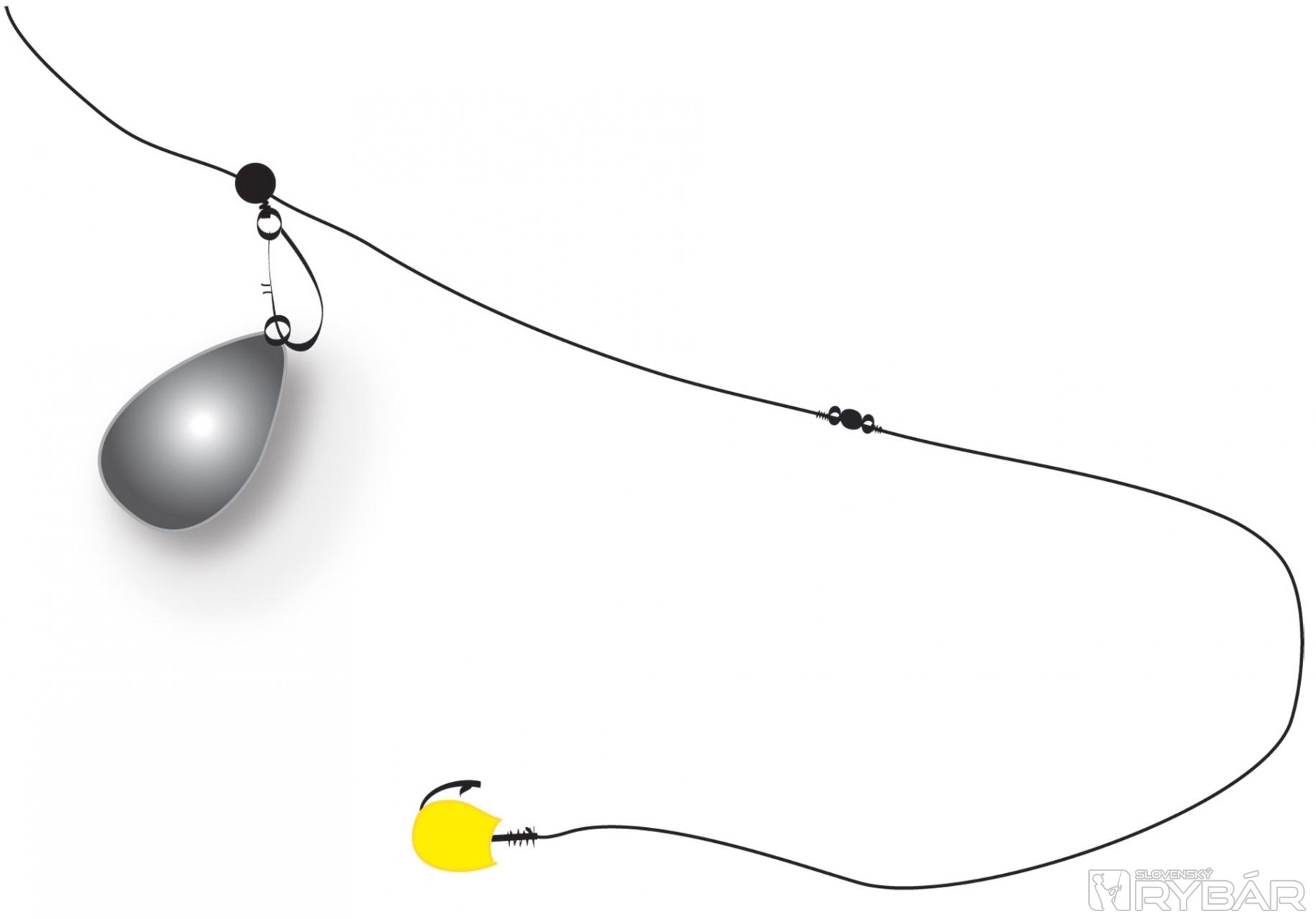 Vystačíme so základnými, všeobecne známymi typmi. Z nich prakticky využívam len dva – jednoduchý paternoster a v 90 percentách jednoduchú priebežku. Kmeňový vlasec 0,18 – 0,20 mm s nadväzcom 0,16 až 0,18 mm. Nadväzec zásadne spájame s kmeňom pomocou mikroobratlíka. Kukurica pri sťahovaní veľmi stáča vlasec a obratlík túto nepríjemnosť eliminuje. Ak jeden obratlík nestačí, použijeme dvojitý, ktorý sa používa pri prívlači. Háčik pevný a ostrý veľkosti 10, značka podľa výberu.