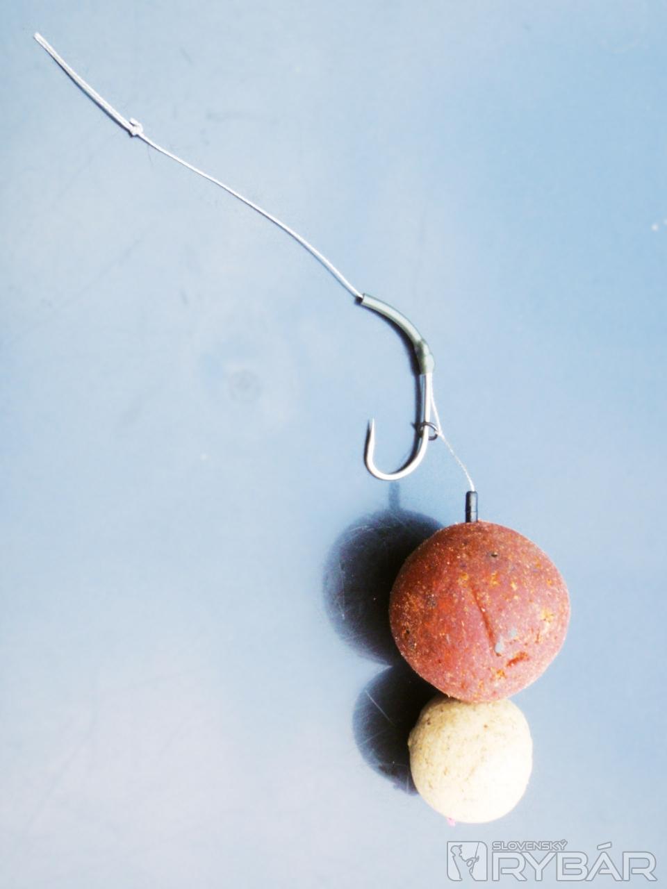 Toto je mojím favoritom a ako nástrahu ho používam skoro vždy. Za takúto prezentáciu nástrahy považujem aj lov na tzv. ,,panáka“. Ide o kombináciu jedného potápavého boilies, nad ktorým je na vlase navlečené plávajúce boilies. Týmto spôsobom vykompenzujeme väčšiu hmotnosť potápavého boilies, ktoré je nadľahčované ,,plávačkou“, a tým dosiahneme nástrahu pomaly potápavú, ktorá v ideálnom prípade bude balansovať na dne jazera.