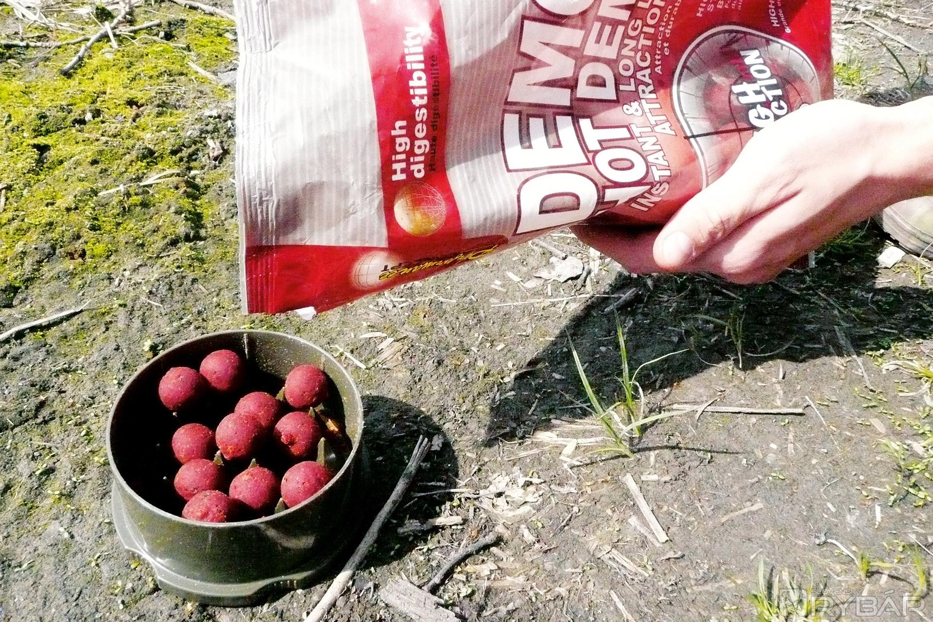 Preferujem väčšie priemery boilies, teda 24 až 32 mm, pričom na ne lovím prakticky stále, vrátane jarného obdobia. Ak ide o potápavé boilies, na vlas navliekam vždy len jednu guľôčku. Pri veľkom počte malých kaprov, ako aj bielych rýb, lokalite kde chytáme, nie je niekedy ani použitie veľkého priemeru boilies zárukou ulovenia veľkého kapra. Z vlastnej skúsenosti viem, že ani 5 kg kapor nemá problém s nasatím 32 mm boilies. V takom prípade je vhodné nechať boilies vytvrdnúť.