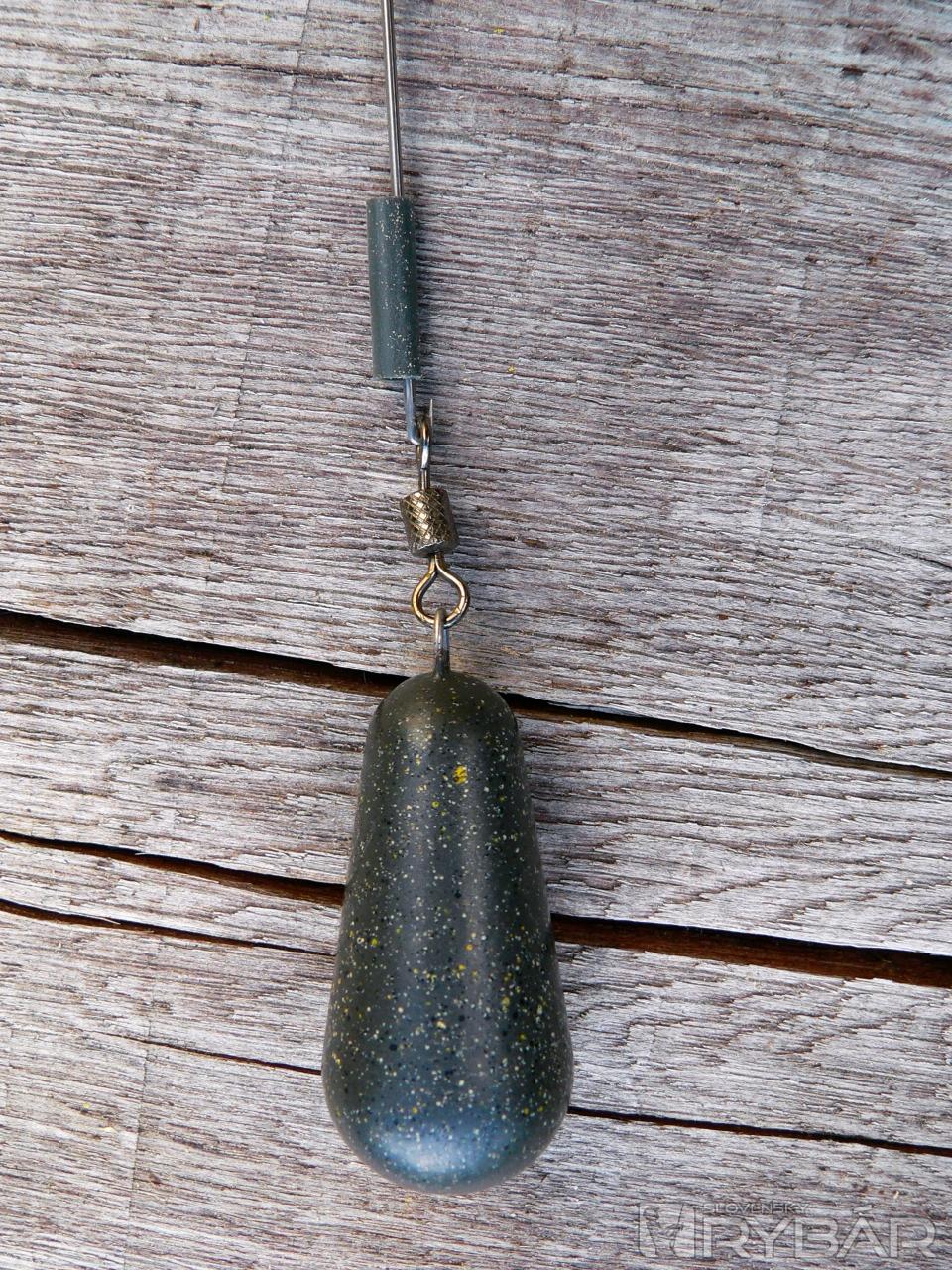 Montáž s použitou bužírkou namiesto olovenky. Ide o novinku obohatenú volfrámom. Kopíruje dno a s kvalitnou nástrahou double trick tvorí luxusnú kombináciu. Používam ju na dne s trávou.