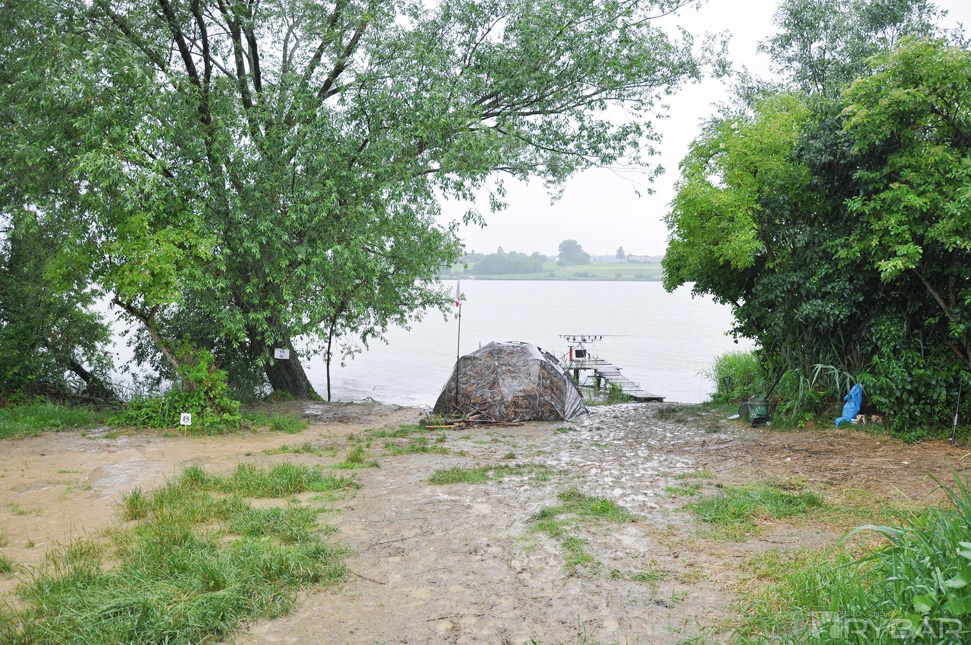 Nikdy sme tu nechytali a reliéf brehu nedával najmenší náznak, že práve tu to bude nádejnejšie než inde. O to viac pokojnejšie sme išli žrebovať. Bolo nám prakticky jedno, čo vytiahneme, pretože sme nemali ani páru o tom, či dané miesto bude dobré alebo nie. Len sme si priali dostatok miesta, čo sa nám splnilo. Pre prvú polovicu pretekov sme si vyžrebovali miesto pri prítoku, kde aspoň podľa mapky bolo priestoru viac než dosť. Ešte aby tam boli ryby, hovorili sme si, pretože podľa informácií od organizátorov šiel silný vietor už niekoľko dní od prítoku smerom ku hrádzi.