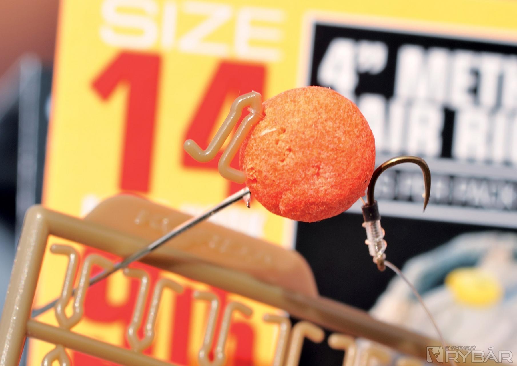 Ja som mala hotové nadväzce s háčikom MWG veľ. 14, vlasovým prívesom a silikónovou bužírkou. Keďže používame 10 mm boilies, je dôležitá dĺžka vlasového prívesu. S pomôckou Extenda od Kordy je zvolenie dĺžky hračkou. Pred nahodením je dobré skontrolovať, či je silikónová bužírka v oblúčiku háčika. Je to kvôli lepšej pozícii háčika, teda prináša to viac záberov a zdolaných rýb.