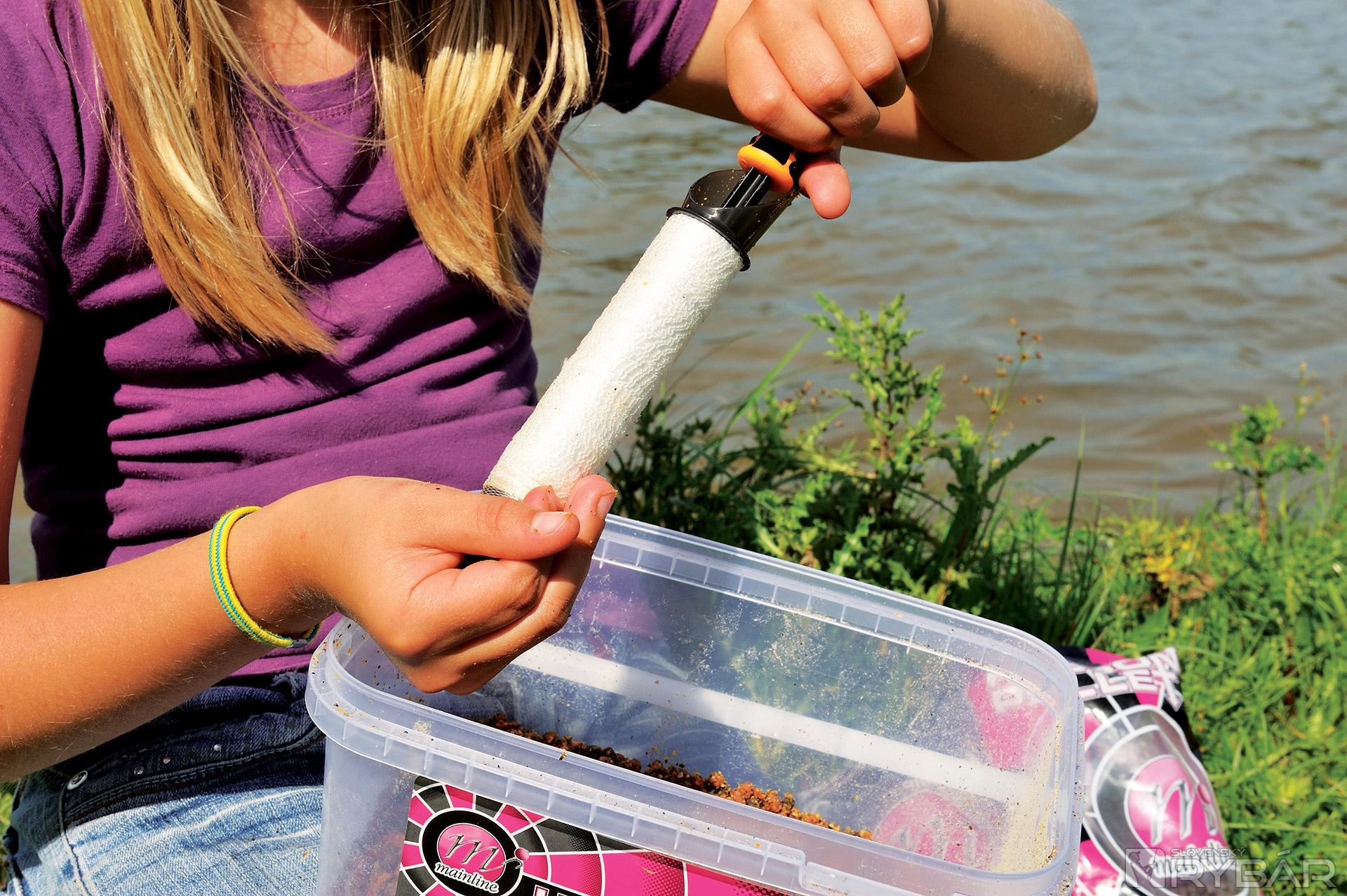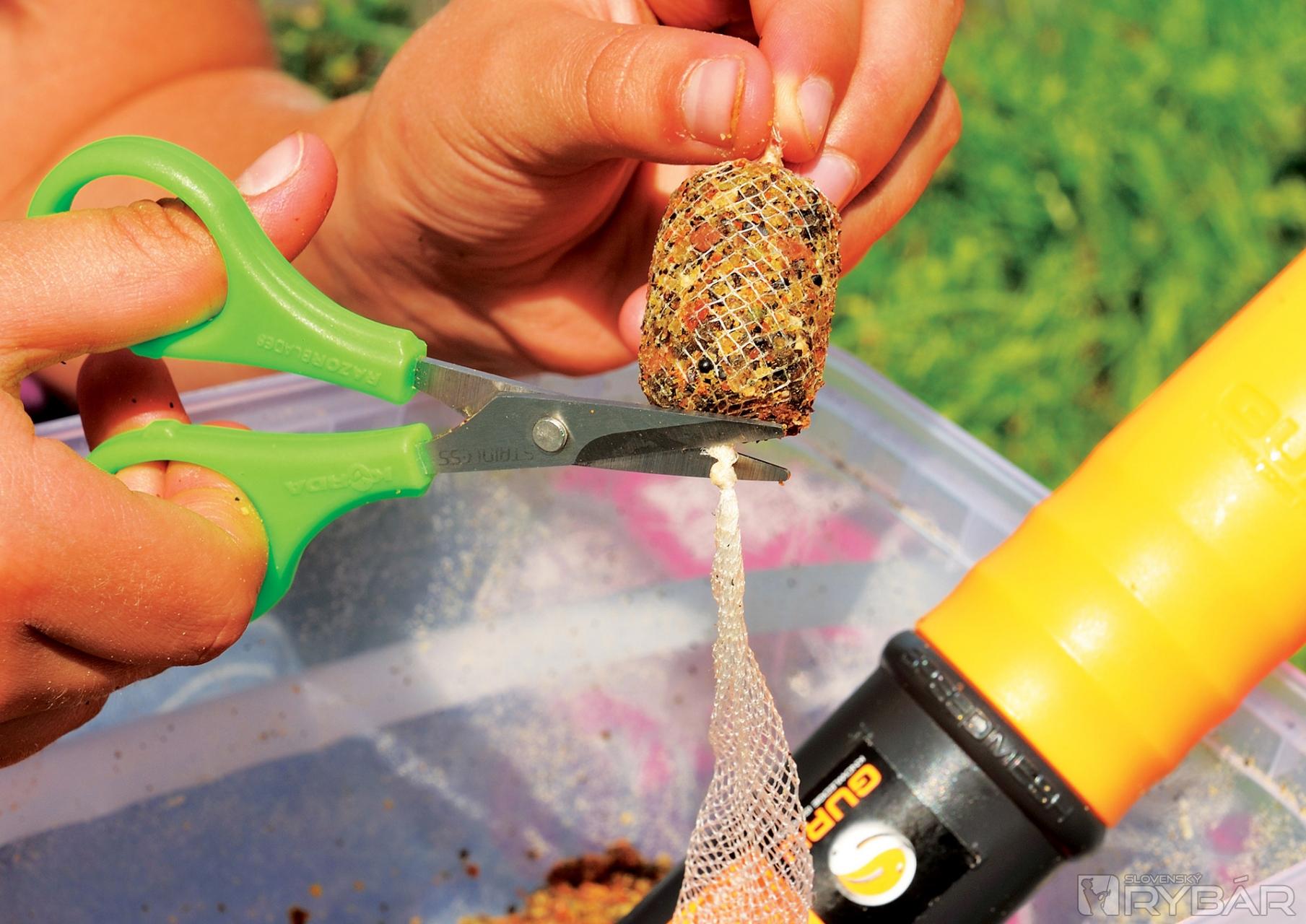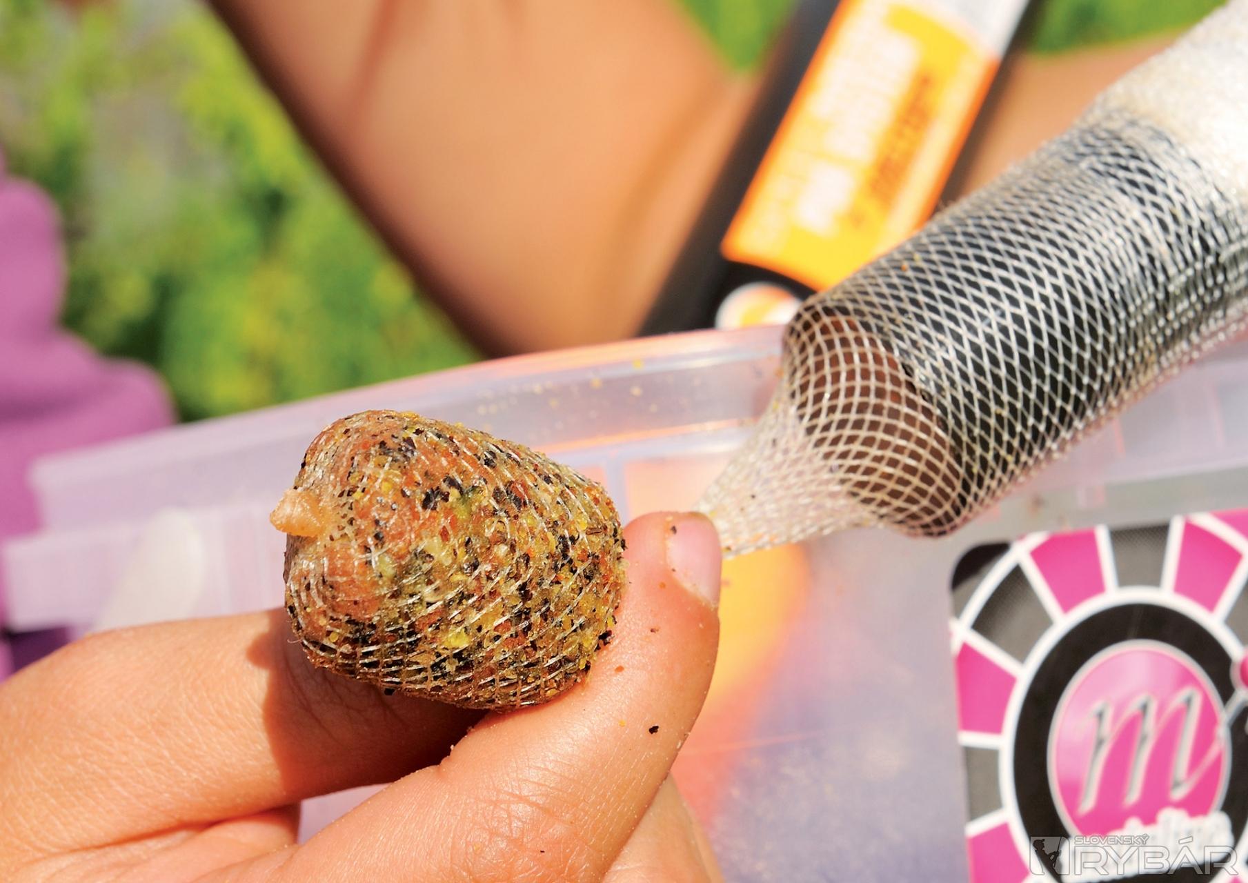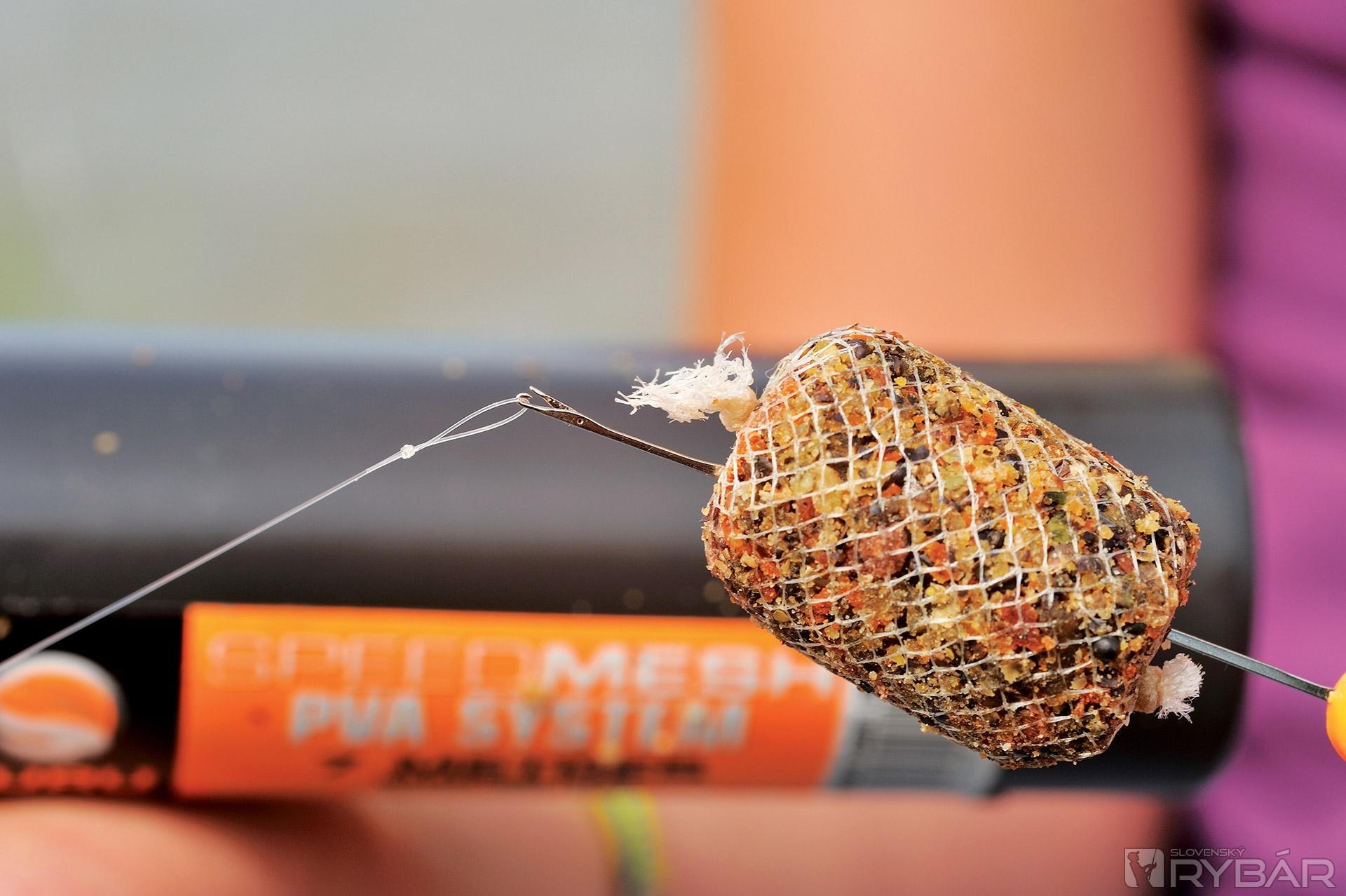 Na udržanie rýb používam PVA pančuchy, keďže veľké kŕmne gule spôsobujú príliš veľký ruch. PVA pančuchy zabezpečia extra atraktívnu zložku ihneď vedľa nástrahy. Krmivo je mierne vlhké, ale nerozpustí PVA materiál, takže ocko ich niekoľko zhotovuje. Takýmto spôsobom sme pripravení a nestrácame čas, keď ryby prídu na náš „flek“.