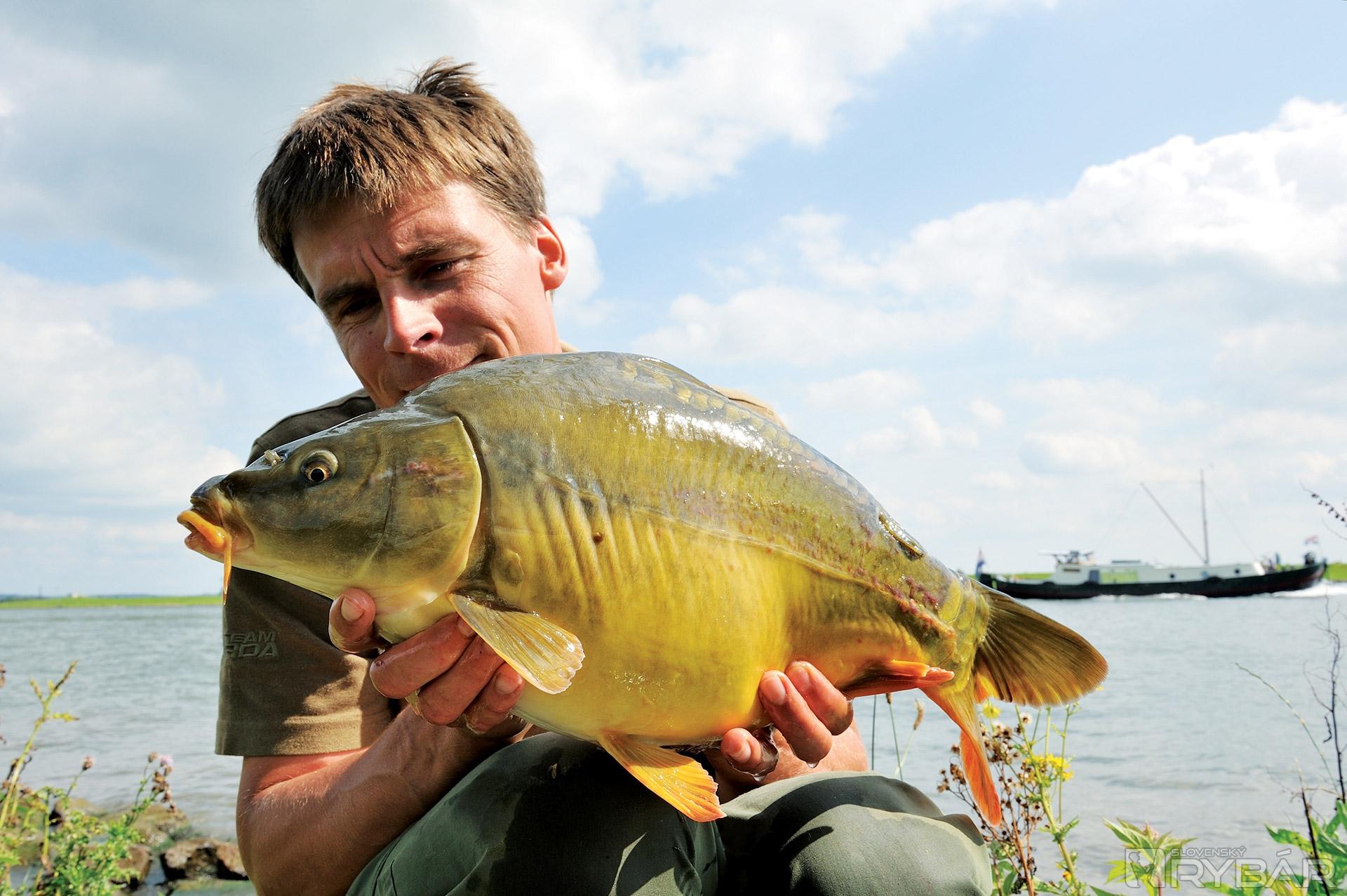 Cievka ockovho navijaka zarapkala. Ulovil niečo väčšie. Púšťam pleskáča a kráčam k nemu s podberákom v ruke. Keď sa ryba ukáže na hladine, vidíme, že je to kapor. Bráni sa, niekoľkokrát sa pokúša vykĺznuť z podberáka, ale márne. Je teda dosť ťažký. Ocko ho vyháčkoval a zhotovuje niekoľko fotografií. Potom je šetrne vrátený naspäť do rieky a ja sa vraciam k mojim veciam.