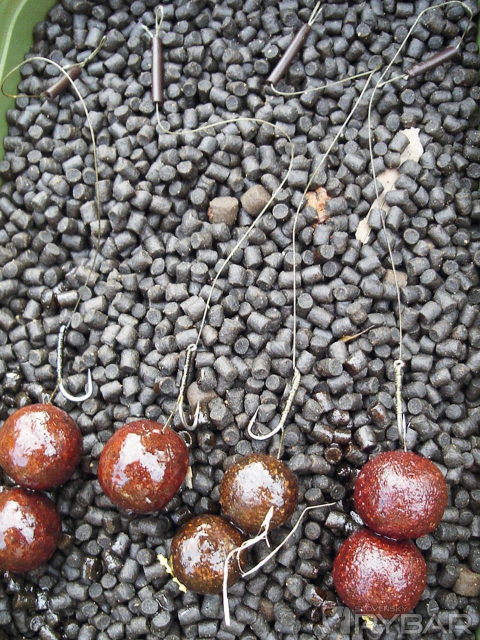 Keďže ide o stojatú vodu, tak vnadím väčšiu plochu, pokojne 20 krát 20 metrov. Vďaka postupnému rozpadu method mixu sa do vodného stĺpca začnú uvoľňovať drobné čiastočky, ktoré rybám signalizujú potravu. Je potrebné rybu zaujať, pretože drobnými čiastočkami sa ryba nepresýti, v tej chvíli začína prehľadávať lovné miesto, kde nachádza kúsky boilies a rozpadávajúce sa guľôčky method mixu. PVA pančuchy plním kúskami nakrájaného a rozdrveného boilies s pridaním 6 mm peletiek zakvapnuté dipom, ktoré umiestňujem pomocou dlhej ihly k samotnému koncovému nadväzcu. PVA pančuchu prešívam ihlou, zaháknem nadväzec, ktorý má na konci očko a ten pretiahnem cez pančuchu. Hrot háčika sa tým krásne schová. Očko zavesím na obratlík Quick Snap Swivel. Vďaka tomuto obratlíku je výmena nadväzcov veľmi jednoduchá a rýchla.