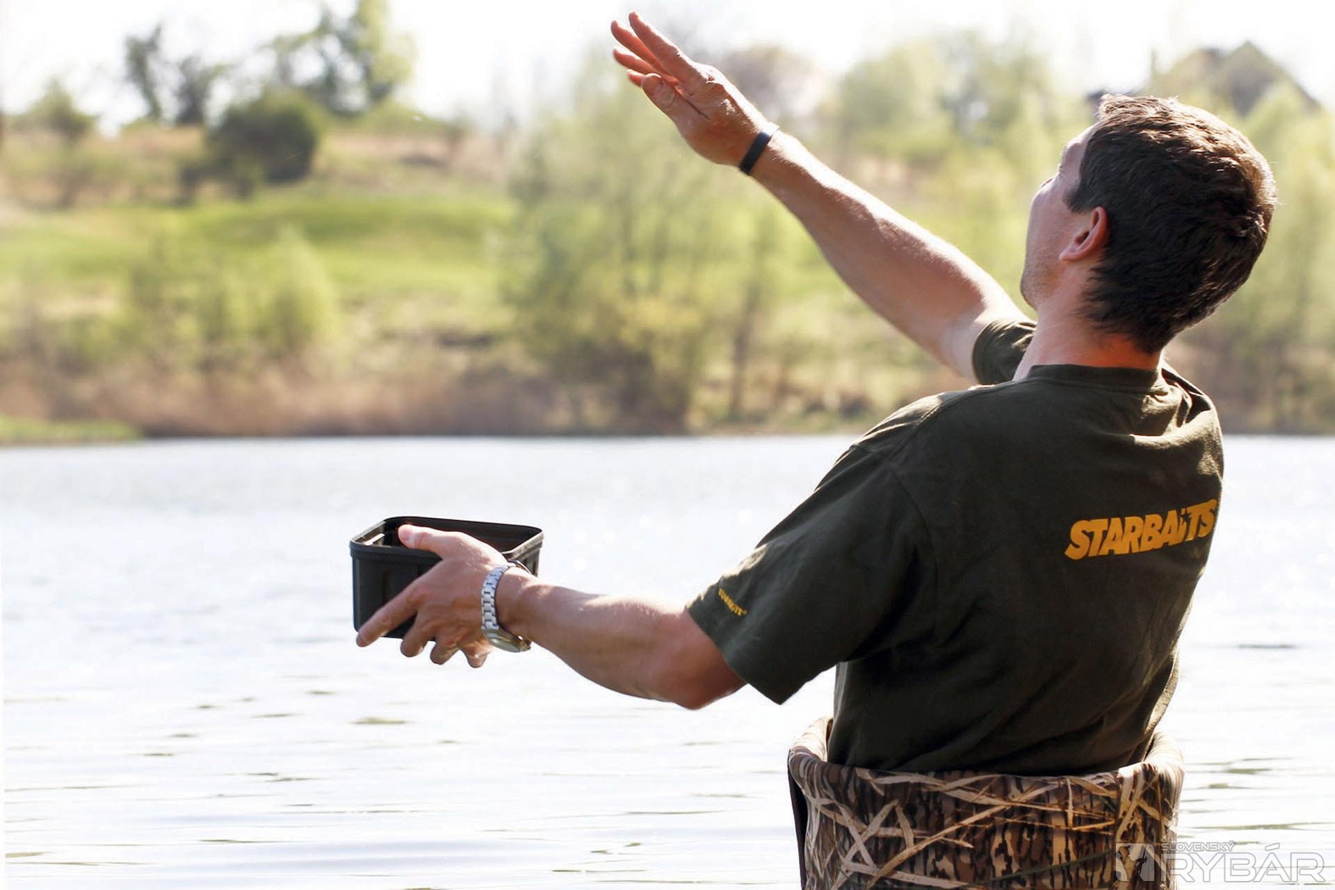 Len taktiku lovu mením. Ubrať vnadenie celým boilies a skôr sa zamerať na vytvorenie väčšej pachovej stopy pomocou dipu, method mixu, malých peliet a polovičky boilies rovnakých príchutí ako predkladané nástrahy. Do method mixu pridávam rozdrvené peletky a boilies pomocou „Krushe“, rovnako tak rôzne veľké kúsky nakrájaného boilies s pridaním celých 6 mm peletiek. Takto pripravený ešte suchý method mix mierne prelejem dipom, premiešam a potom pomaly pridávam vodu, aby som docielil väčšiu súdržnosť method mixu. Z pripraveného method mixu vyrábam guľôčky rôznych veľkostí. Takto pripravený method mix dopravujem pri menšej vzdialenosti prakom k lovnému miestu.
