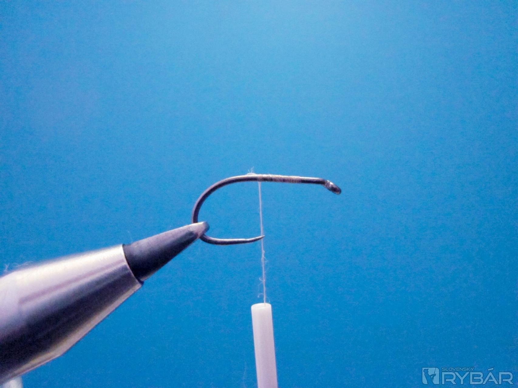 Viazacou niťou naviažeme tenký snopček peria marabou.