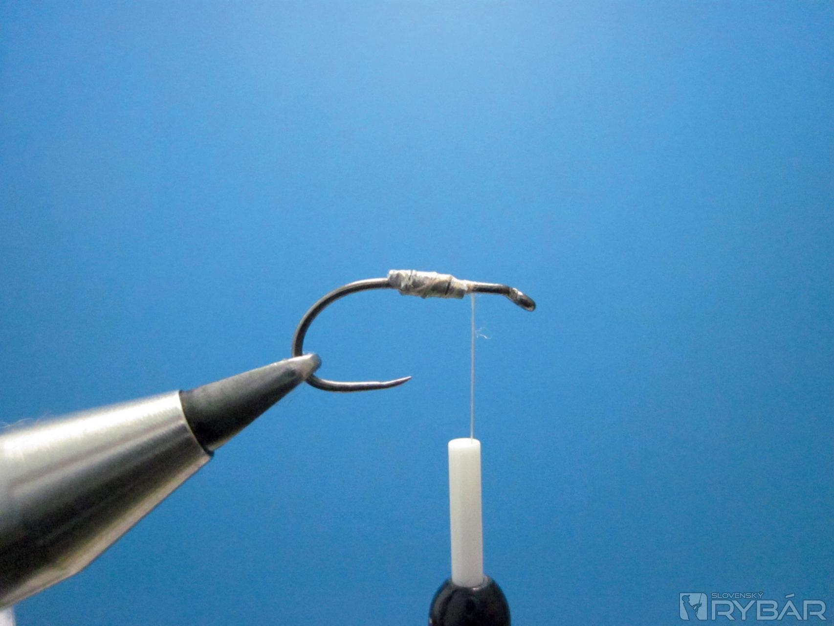 Ako ďalší krok naviažeme z jednej strany tenkú perleťovú lametku.