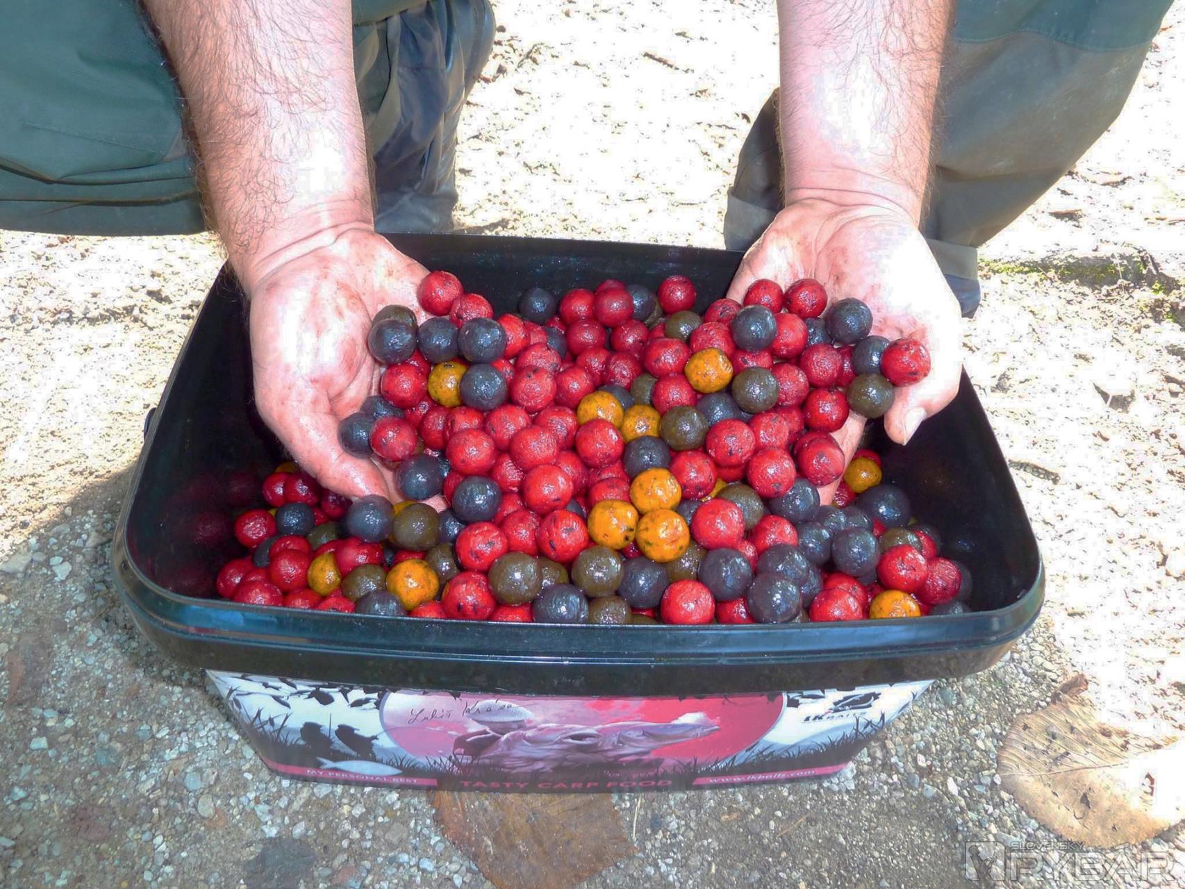 Vládne celkom chladné, upršané a sychravé počasie. Zhodnotil som ho na to pravé jesenné počasie a ideálne na kapry, veď to poznáte. Na kŕmenie sme si zobrali iba boilies a nejaké pelety. Nie je nad čím špekulovať. Na obe udice dávam kombináciu potápavého a plávajuceho boilies, ktoré mi skoro vždy a všade prináša úspech, jednoducho mu maximálne dôverujem. Po pár hodinách mi bolo jasné, že tu s tým ,,dieru do sveta“ nespravím. Nevedel som spraviť záber od kapra a moje nástrahy vo veľkom atakovala biela ryba a bolene, čo som už naozaj prestal chápať. Nikdy som to nevidel. Za pár hodín som chytil viac boleňov ako za celý život na muškárku alebo prívlač. Takže som veľmi rýchlo upustil od kombinácie plávajúceho a potápavého boilies. Zvolil som taktiku iba jedného, samotného boilies na dno. Rozhodli sme sa chytať na Black Protein a Sea Food.