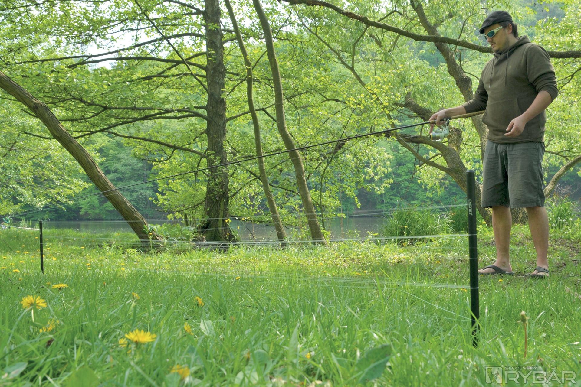 Na to nám perfektne poslúžia špeciálne tyče „distance sticks“, ktoré sú na tento účel vyrobené. Ich použitie je veľmi jednoduché. Proste si na brehu nájdite kúsok voľného miesta, kde ich zapichnete. Vzdialenosť medzi tyčami vám pomôže presne vymedziť šnúrka s dĺžkou 12 stôp - teda dĺžky kaprového prúta. Potom jednoducho položte marker k jednej tyči, odklopte preklápač navijaka a začnite prútom namotávať medzi tyče svoj vlasec.
