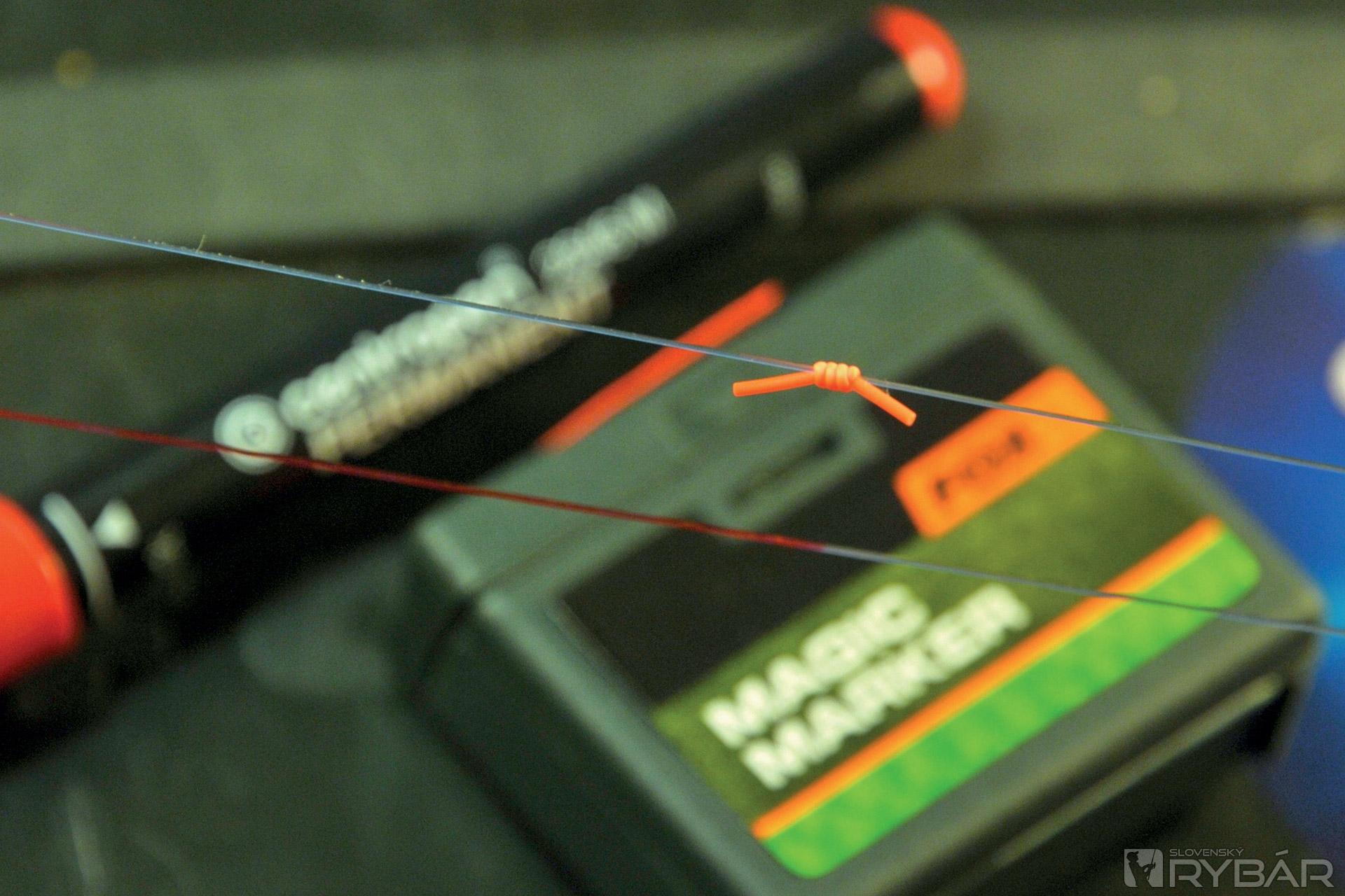 Po uložení prúta do hlásiča je možné si klipovanú vzdialenosť označiť navyše aj značkou na vlasci. Na to dobre poslúži liehová fixka alebo uzlík zo značkovacieho materiálu. Ak sa kapor po zábere rozbehne a bude treba mu povoliť, stačí jednoducho jedným prstom uvoľniť vlasec z klipu. Značka na vlasci nám neskôr pomôže nájsť miesto pre jeho opätovné zaklipovanie na správnom mieste.