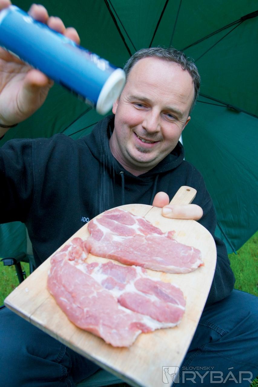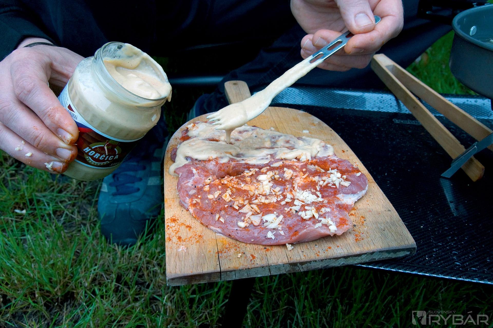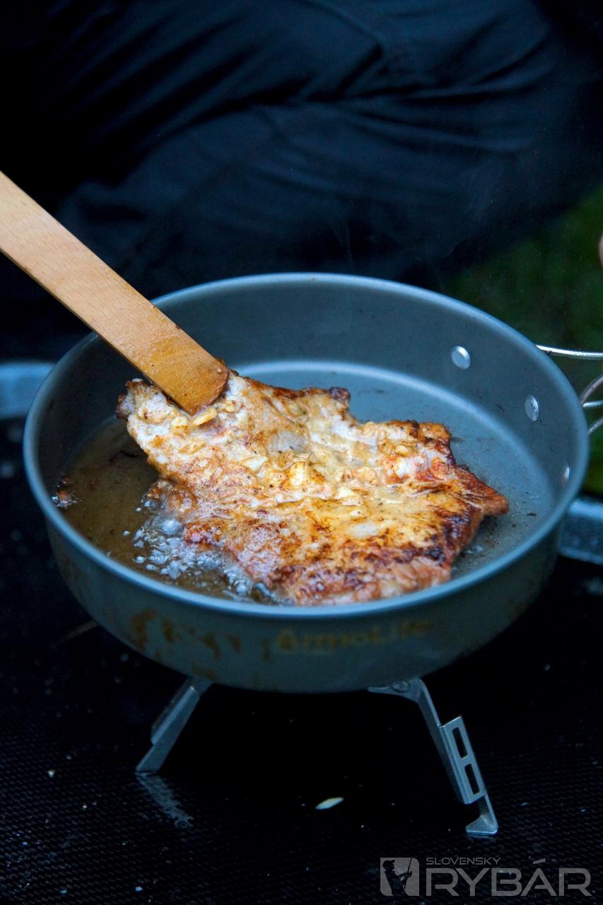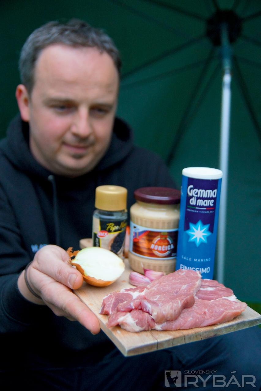 Svoj obľúbený variant vám dnes ponúka náš dlhoročný spolupracovník a skúsený rybár Vlado Žúbor. A tu je jeho komentár: „Na toto jedlo nedám dopustiť a ak naozaj idem k vode len na pár hodín a viem, že nebudem mať čas na varenie, tak si určite spravím pri vode aspoň opečenú krkovičku. Je to stokrát lepšie ako hladný nahádzať do seba „fastfood“ či kruto zakonzervované jedlá v konzerve. Optimálna je príprava mäsa deň vopred a marinovanie cez noc, ako je uvedené v jednotlivých krokoch. Ak však nemáte čas, prípadne sa spontánne rozhodnete ísť na rybačku počas dňa, môžete mi veriť, že aj priamo pri vode pripravená krkovička bez predchádzajúceho marinovania chutí skvele. Práve na tento variant sme sa zamerali a snažili sme sa vám priblížiť prípravu tohto jedla spontánne priamo pri vode, bez akýchkoľvek príprav formou krátkeho fotoseriálu.“