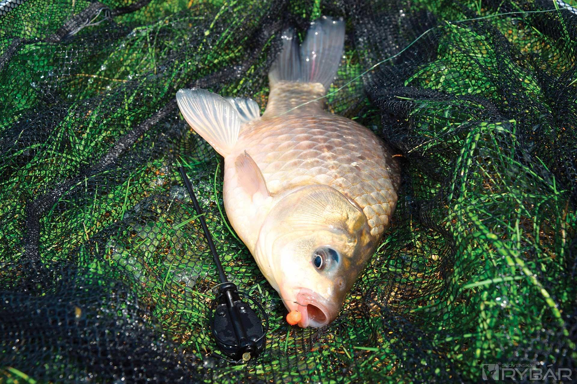 Romanko si naplnil kŕmidlo s krmivom, nastražil na osteň malú peletku, pripravil sa na nahadzovanie a koncová montáž už letela do vzdialenosti 50 metrov, približne na zakŕmené miesto. Ja som síce prišiel aby som pomáhal Romankovi, ale aj ja som mal so sebou svoje feeder prúty, a tak som aj ja nahodil svoje montáže a čakal na záber. Nemuseli sme dlho čakať lebo po pár minútach sme obidvaja zaznamenali záber a skoro v rovnaký čas sme aj zasekávali a zdolávali.Tu sa možno pozastavíte nad touto mojou vetou, že zdolávali, ale áno opatrne sme zdolávali 500- až 800-gramové karasy s jemným náčiním, malým háčikom. Zdolávania síce netrvali dlho iba 2 – 3 minúty, ale presne toto som chcel, aby sa mladý rybár naučil ako sa má zaobchádzať s prútom, navijakom, cievkou navijaka počas zdolávania ryby. Išlo mu to celkom v pohode, no je tam ešte čo dolaďovať, ale keď aj naďalej bude chodiť k vode so skúsenejším rybárom, tak sa to rýchlo naučí. Musí si ešte zvykať na presné nahadzovanie a na podoberanie ryby.