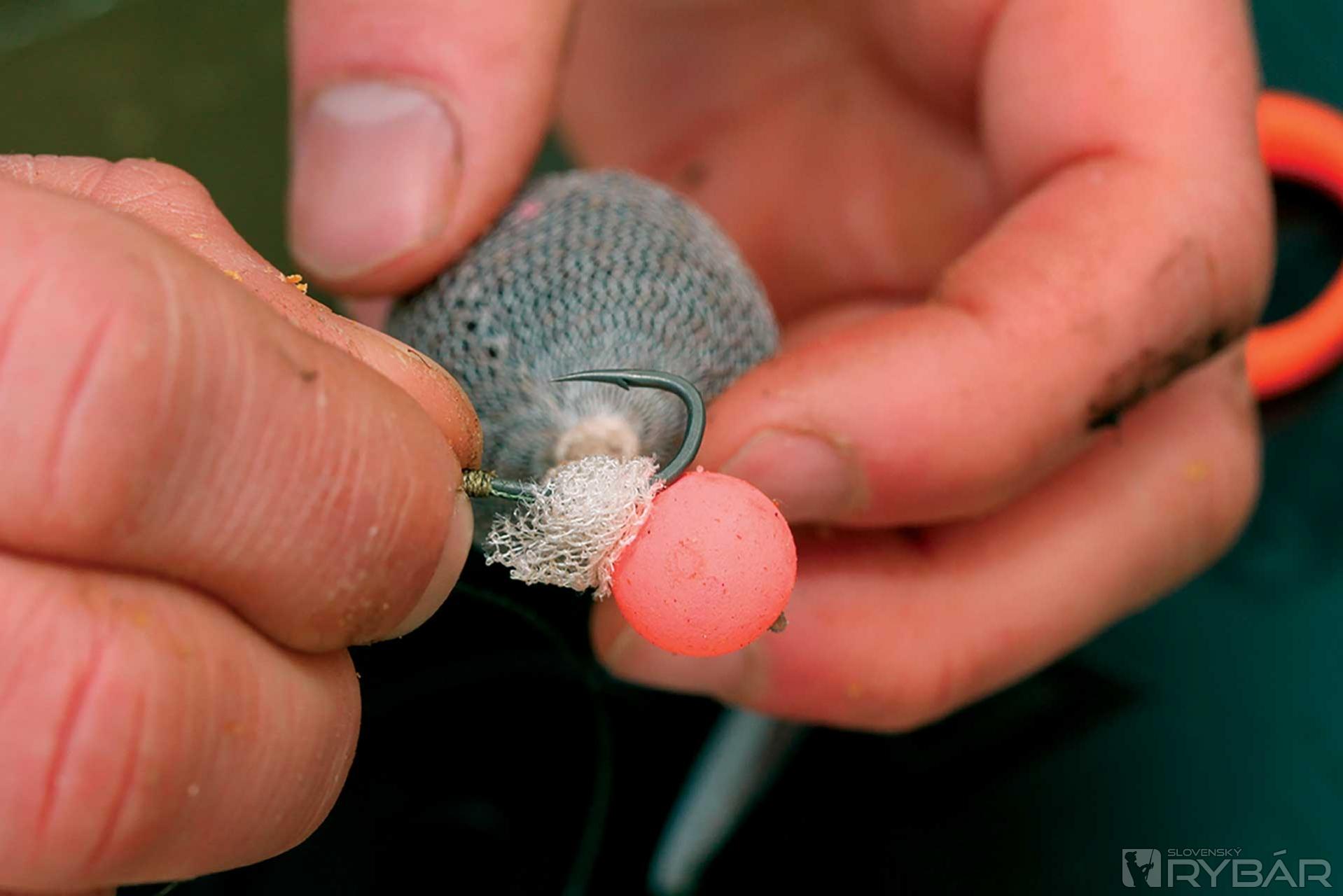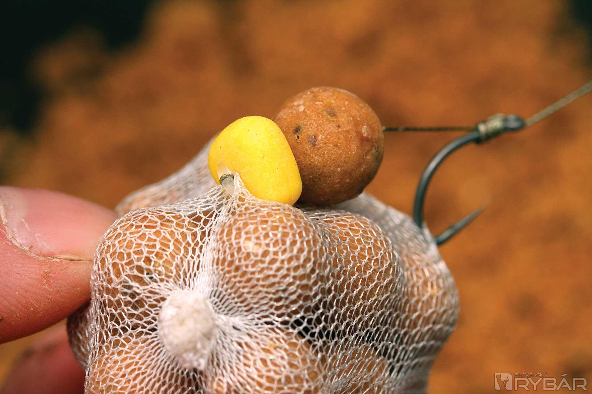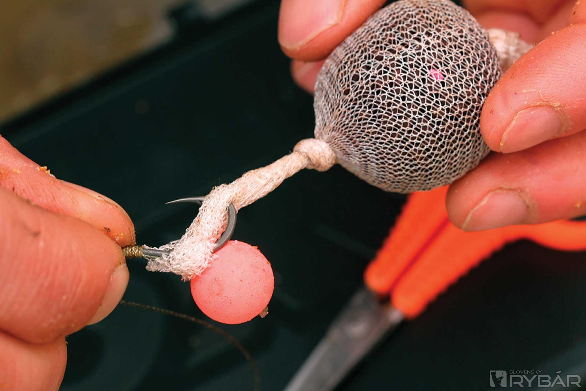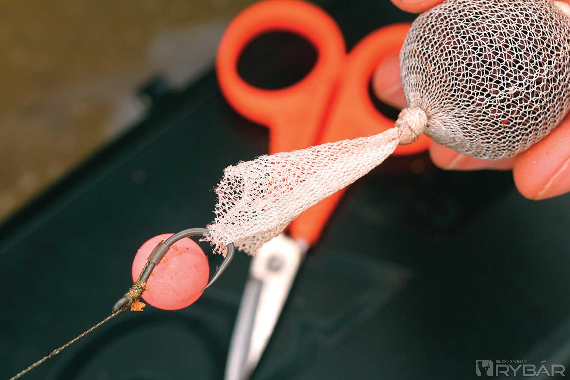 Ďalšia účinná taktika je takáto: Vezmem tri guľôčky a vložím ich do pančuchy aby boli v línii. Tá vrchná bude slúžiť ako nástraha. Jednoducho ju prepichnem a naviažem na vlas, keď sa PVA rozpustí, mám v okolí nástrahy rovno aj návnady boilies. Môžete si takto pripraviť množstvo takýchto balíčkov s guľôčkami. Je to skvelá taktika, ktorú často používam.