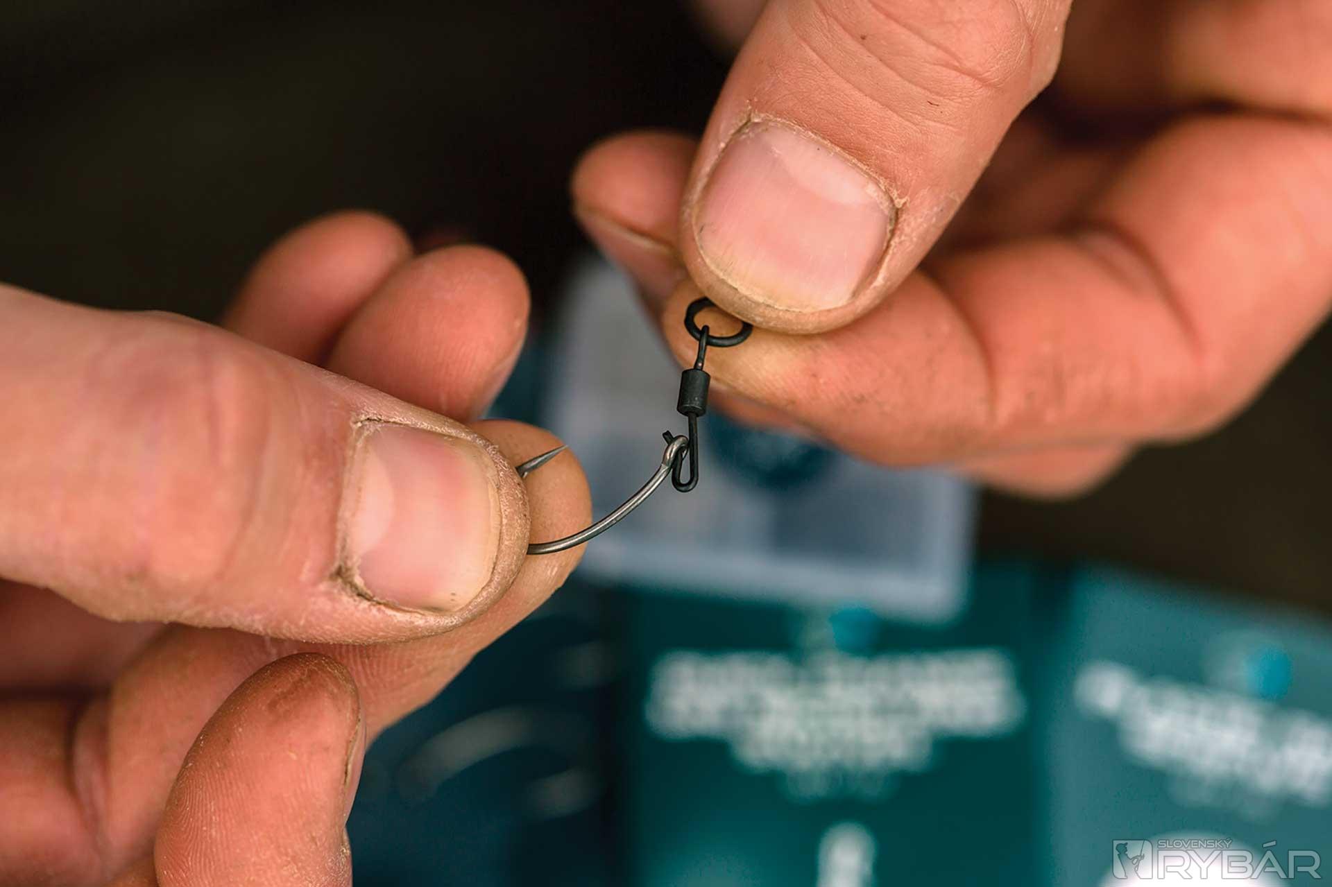 1. Na háčik navlečieme očko rýchlo výmenného obrtlíka.