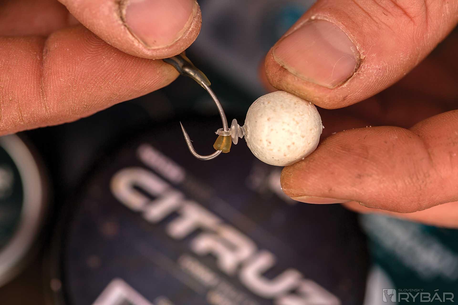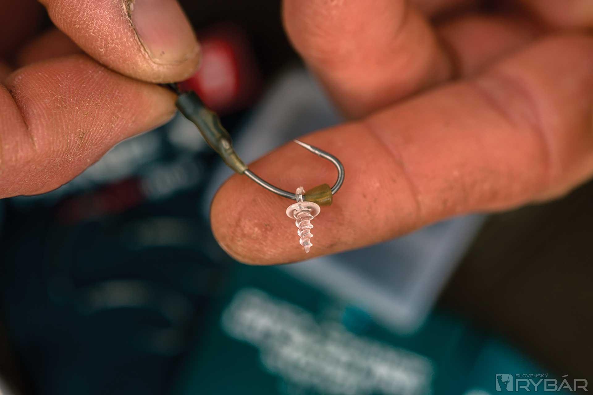 6. Na skrutku pridáme nástrahu. Pri veľkosti háčika 8 je ideálna veľkosť 12 mm, pri sedmičke zas 15 mm.