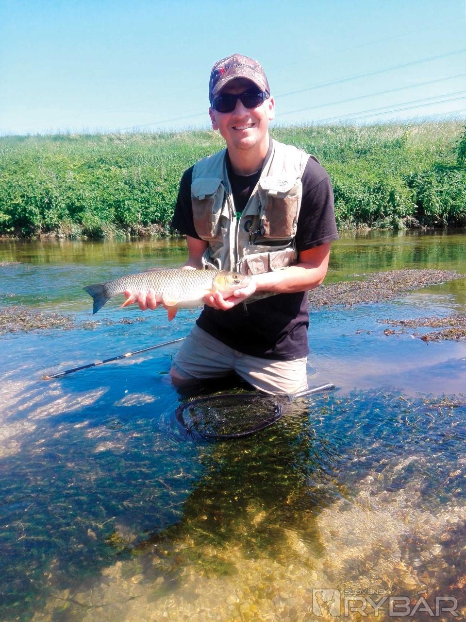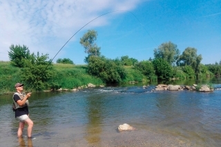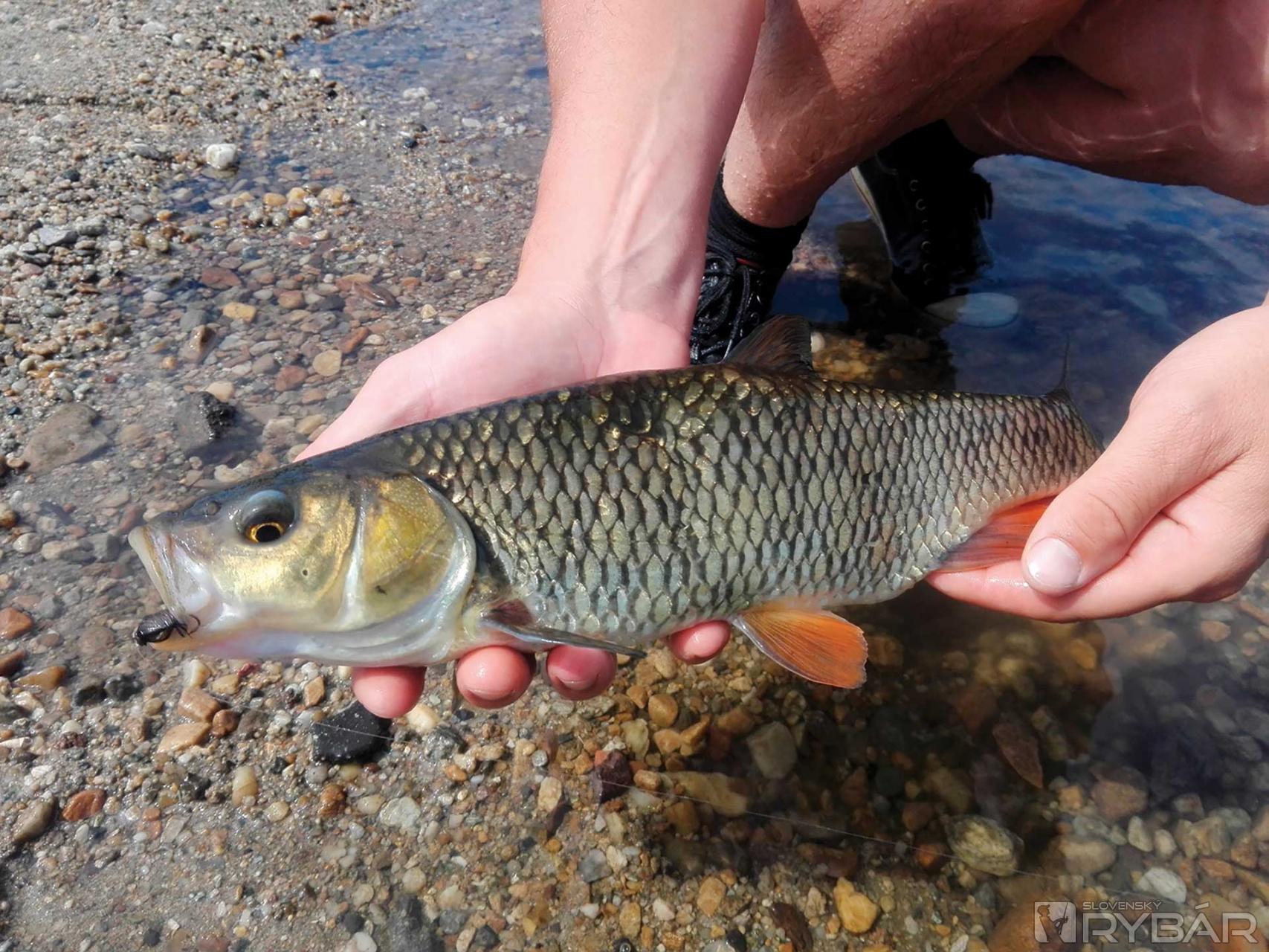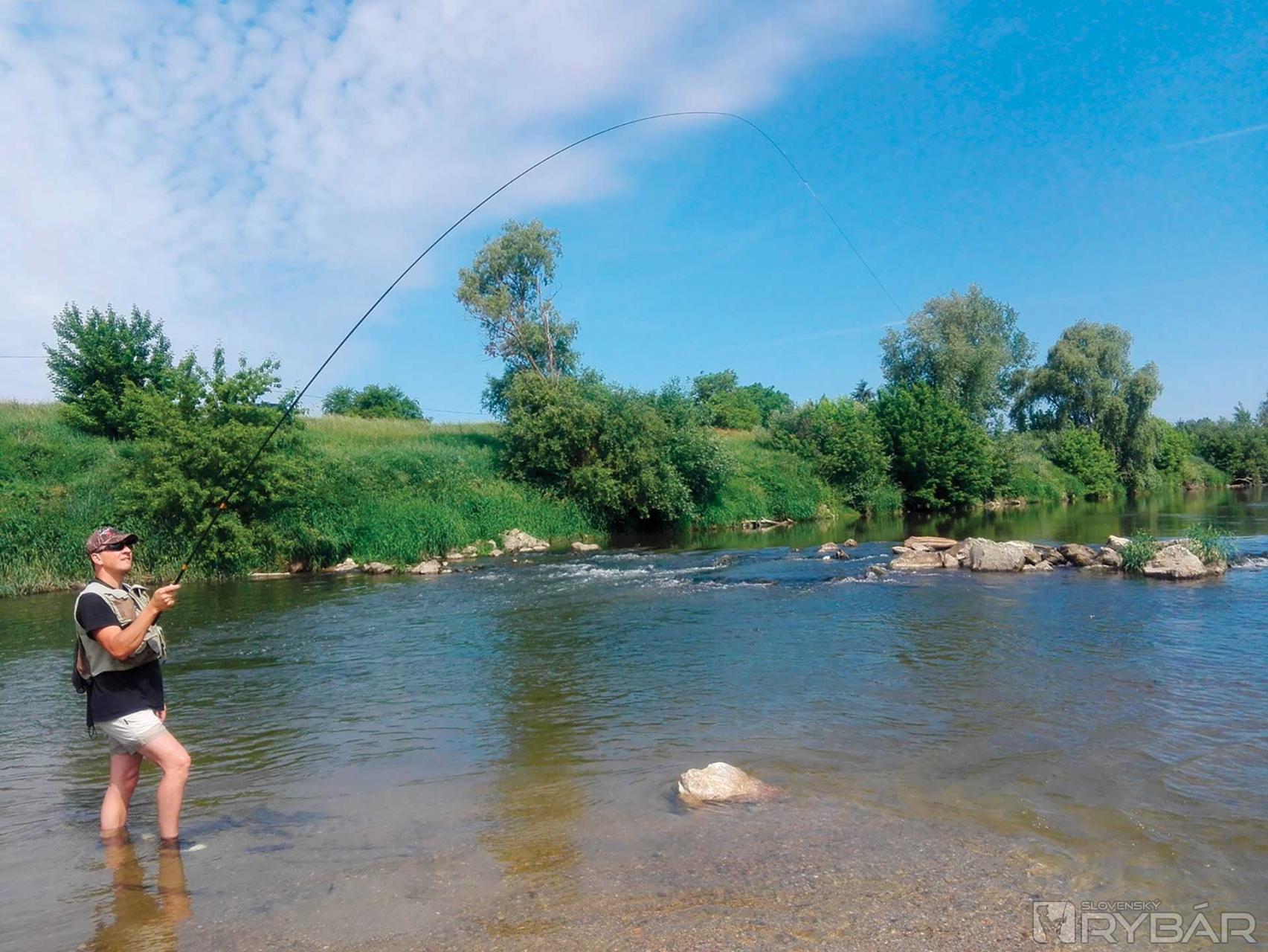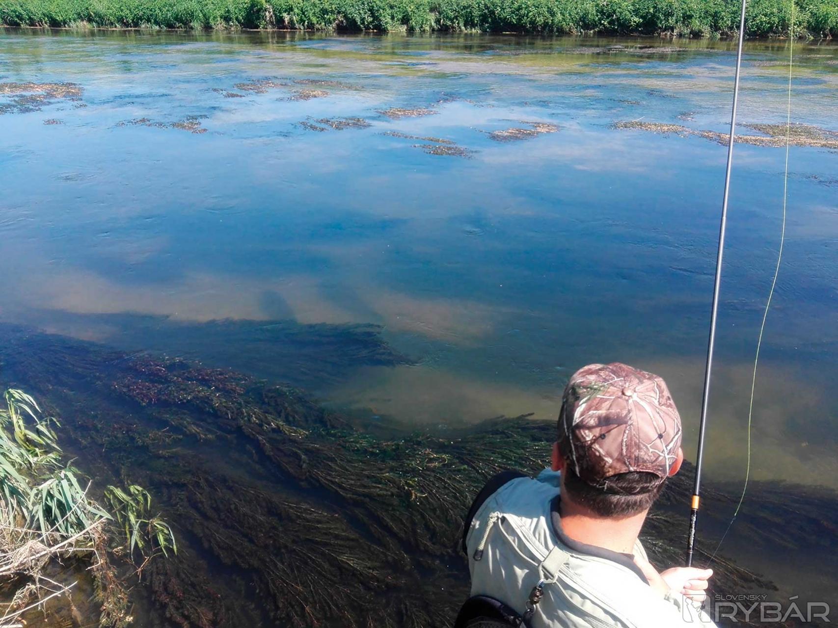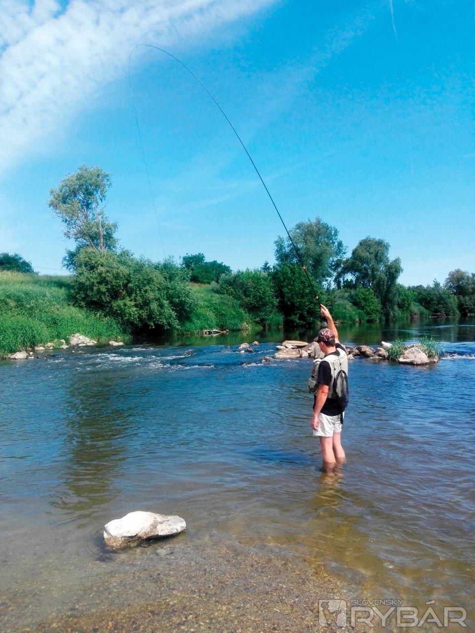 Je 10.00, čo znamená, že slnko je už hore a voda je dostatočne teplá vo vrchnej časti, aby začali zbierať. Takže sme na splave a pozeráme na vodu od nuly tak do 1,5 metra. Keď dorazím, viem, že mám čas, radšej si dobre zmapovať kde sa tie lepšie jedince pohybujú. Chvíľku to trvá, ale lokalizujem tieto body. Kvôli vysokému brehu ich pekne vidieť, už sa k nim len nejako dostať. Po štrkovej lavici si pekne prejdem pod kaskády a skúšam tú najväčšiu tôňu. Pod vodou vidím prechádzajúce sa tiene krásnych jalcov, no reakcia minimálna. Tieto už sú vystrašené. Rušné miesto, nie je sa čo čudovať, no skúšam… a raz pri dopade mušky vidím biele vynárajúce sa hrdlo. Je to tam, zaujala ho! Opatrne sekám, ryba sa zľakne, vyráža spomedzi ostré kamene a spraví pár otočiek. Dlho to netrvá a už ju mám na voľnej vode, ak sa nevyhákne, mám prvú a hneď bodovateľnú rybu pod nohami. Tenkara pracuje v celej dĺžke, ohnutá do C‑čka. Po nej akoby sa vrece roztrhlo a ryby berú mušku poctivo. Možno len stačilo počkať na dobrú chvíľu? Dumajúc vidím prelietajúceho kormorána, pliaga. Tu, kde nikdy nehniezdili, už aj jeden kus je zlé znamenie. Niektoré ryby majú od nich na sebe očividné jazvy. Toto však ja sám nezmením, došiel som hlavu vyvetrať a nie sa ešte viac rozčuľovať.