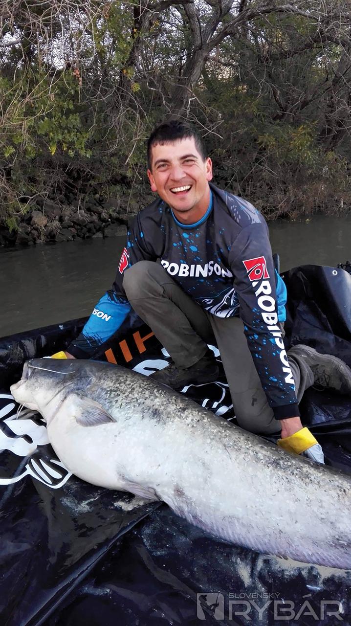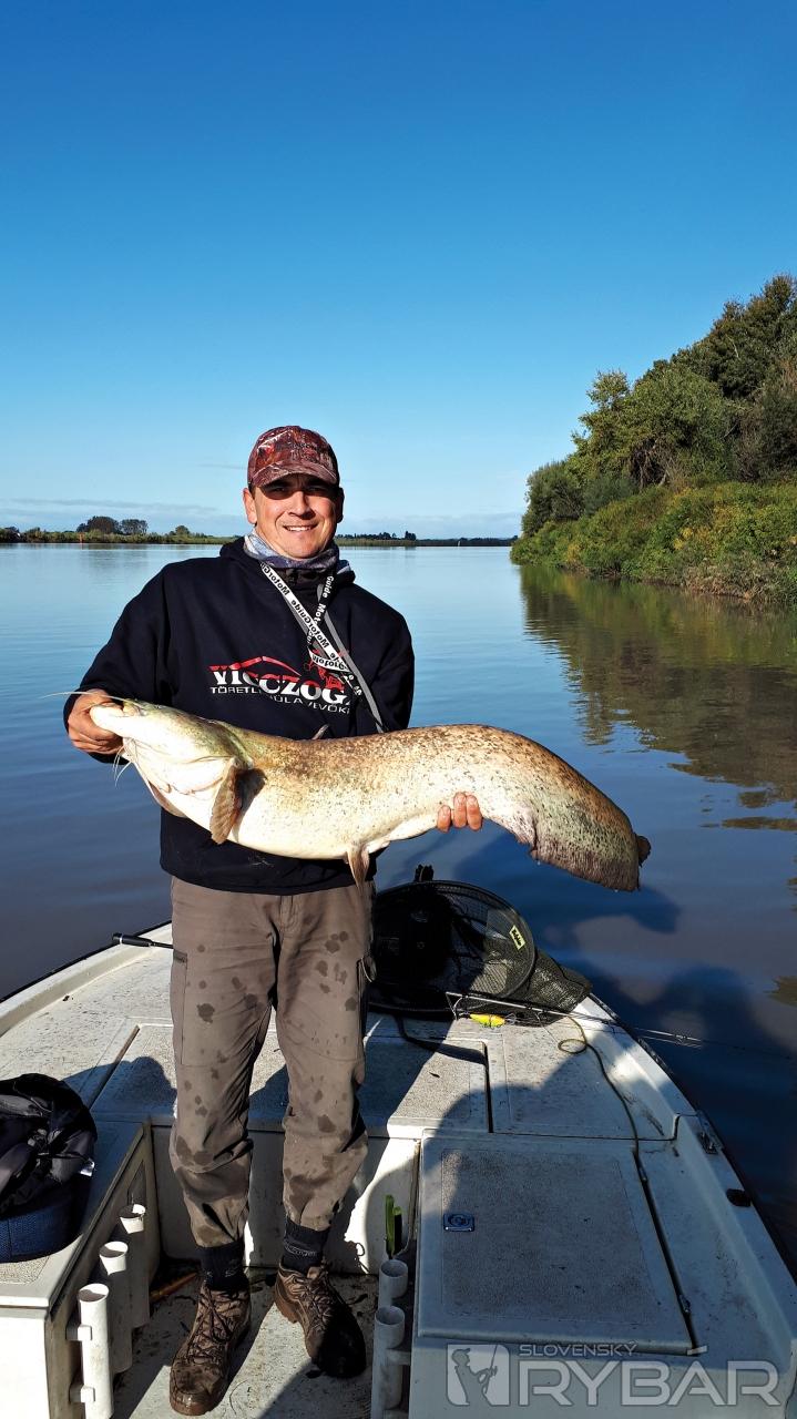 Samozrejme, prvé pohľady boli neveriace, po dlhom dni hádzania zase záber na poslednú chvíľu. Ale ryba ide, ťahá a na moje šťastie smeruje mimo úseku, kde by si mohla nájsť nejakú tú skrýšu. Silu ale má, udica sa statočne ohýba a nie a nie ju podvihnúť. Vybieha dobrých 50 metrov nad miesto záberu, na tichšiu a troška hlbšiu časť, kde voda stojí. Pomaly smeruje hore vedľa hlavného prúdu a potom sa razantne otáča, smeruje späť k pilieru. Skúšame ju opatrne nasmerovať mimo problematické oblasti a celkom nám to ide; obchádzame všetko, kde by sa sumec mohol zachytiť a priamo na rozhraní hlavného prúdu sa splavujeme ďalej. Pomaly rybu dokážem aj dvíhať.