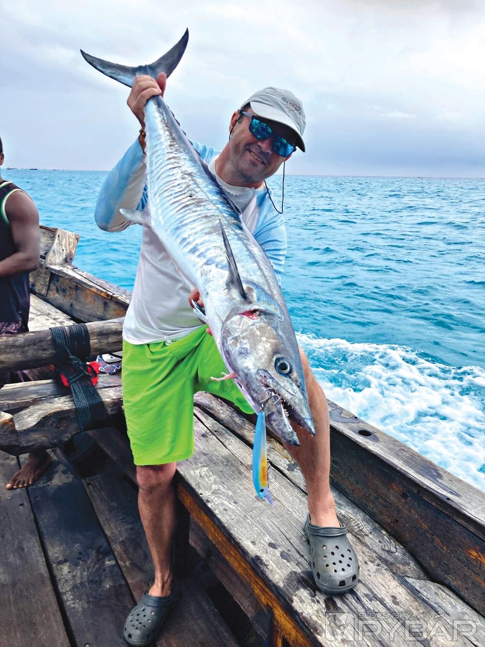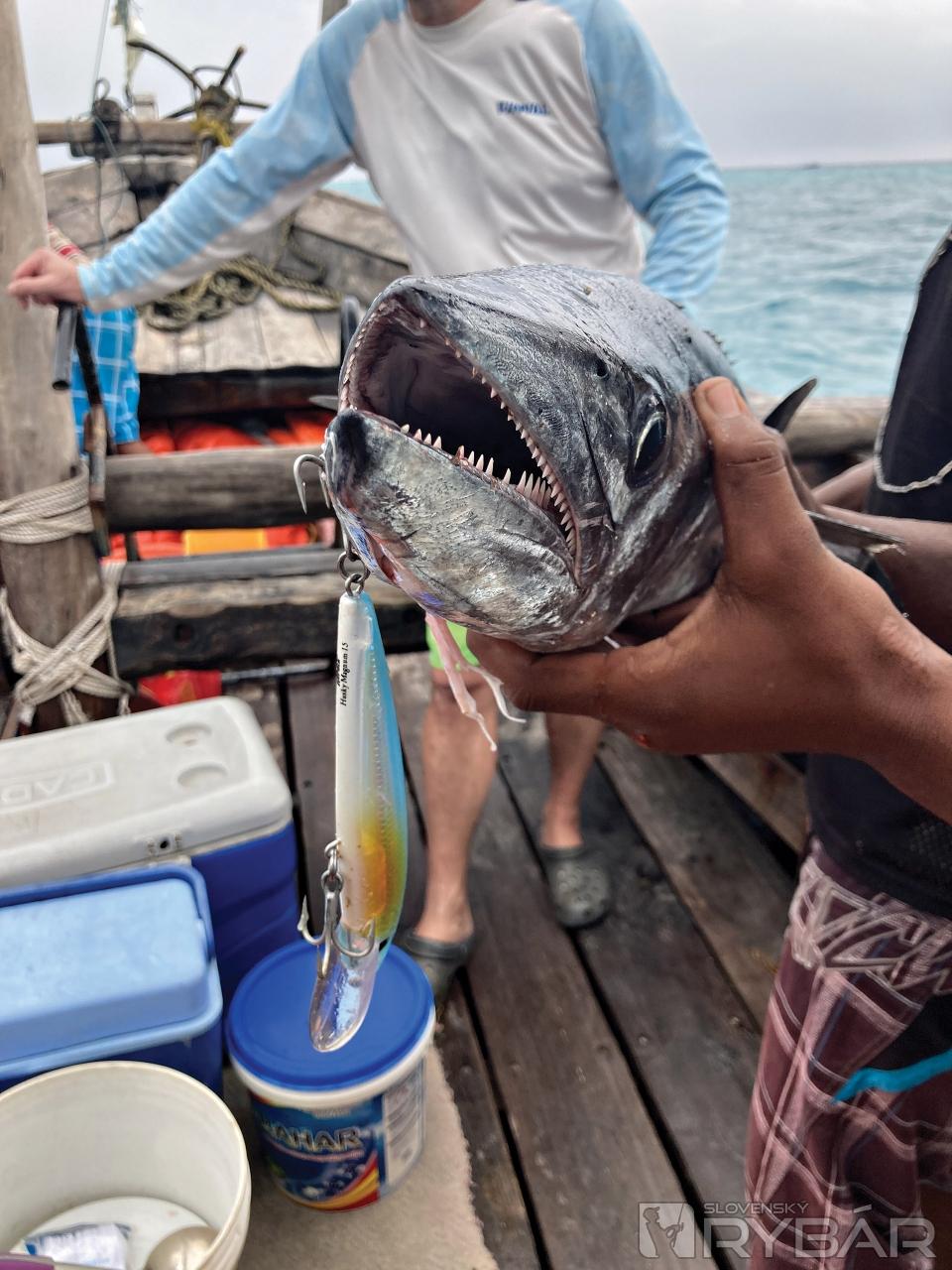 To je asi jediný spôsob na solídnu rybu. Keď sme boli na severe v Nungwi, mali sme v cene šnorchlovanie pri súkromnom ostrove Mnemba (majiteľ Bill Gates). Plavba väčšou loďou trvala približne 2 hodiny, a tak som zobral rybársky ruksak a šiel dozadu k motoru, ktorý riadil kapitán lode. Keď zazrel udicu, vôbec nebol nadšený. To už tam prišli ďalší dvaja z posádky. Otvoril som krabicu s gumami, čo vyvolalo medzi nimi veľký záujem. Najprv som si ale musel získať kapitána, tak som mu vybral zo 10 väčších gúm, čo hneď zabralo. Ostatní dostali po 3-4 kusy. Náramne sa bavili na gumách, naťahovali chvostíky, skúšali ostrosť jigov, asi také niečo videli prvý raz.
