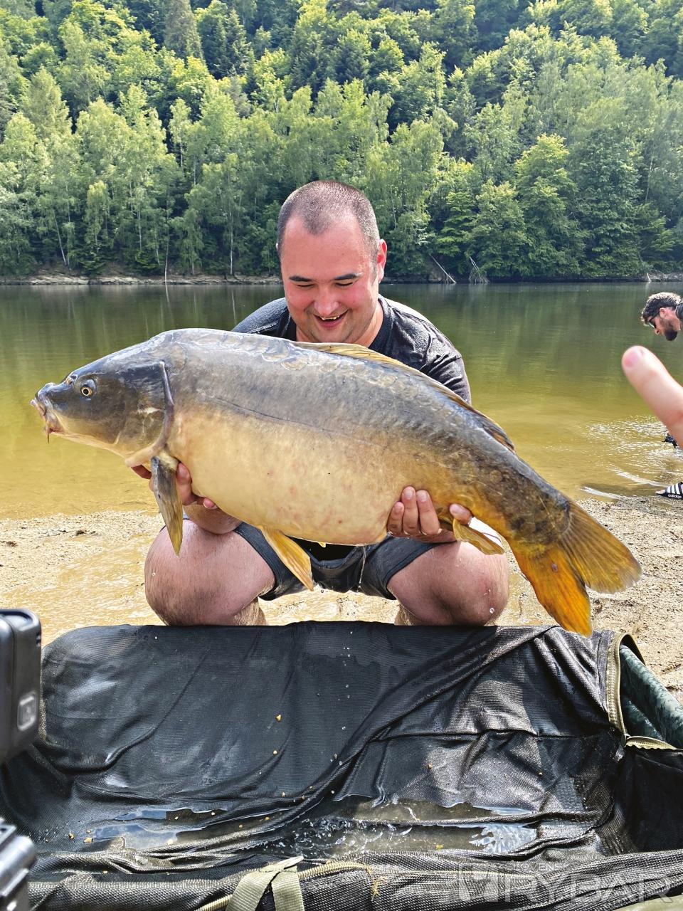 Zo začiatku všetko naznačovalo, že pravdepodobne to bude dorastenec, ktorý bol veľmi hladný. Po chvíľke boja, keď už bola ryba na dohľad, pozeráme a hodnotíme, že to bude nejaký 65 cm kaprík. No opak bol pravdou a zrazu sa vynoril krásny lysec! Vytiahli sme ho von, pripravili sme vaničku a neverili vlastným očiam, čo nám to tam leží. Po zmeraní mal 86 cm a váha nám ukázala 14,5 kg. Nasledovali gratulácie, fotodokumentácia a bežala aj moja GoPro kamera, ktorá to všetko nahrávala. Rybu sme vrátili naspäť do hlbín nášho krásneho Ružína. Martin si pripísal na svoje konto hodnotný osobáčik.