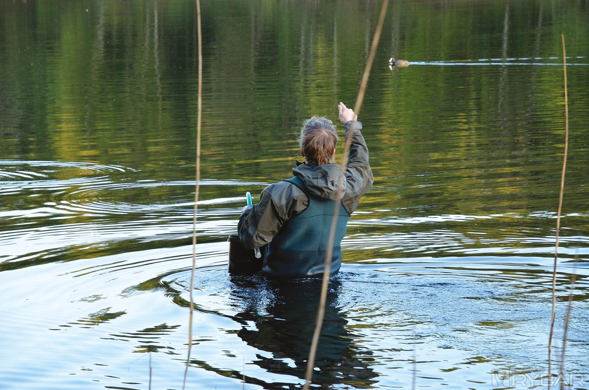 Moje kŕmenie som rozdelil po celom 5-hektárovom jazere na vybraných miestach.