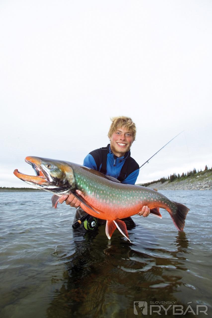 Počas týždňa jazerného muškárenia sme dosiahli excelentné výsledky. Sedel som na skalnatom výbežku, predo mnou neprebádaná tundra, za mnou od slnka vyhriaty útes. Nechal som sa unášať touto krásnou atmosférou, regeneroval ubolené svaly po urputných zápasoch s veľkými rybami a nemohol som uveriť, že sme tu a prežívame podobný krásny príbeh. Veľké jazerá majú svoje čaro rovnako ako ich obyvatelia. Niekoľkohodinová námaha bola koncentrovaná do zápasov s päť- a viackilovými jazernými pstruhmi a často nudnými nahadzovaniami a uvoľňovaniami veľkých rýb.