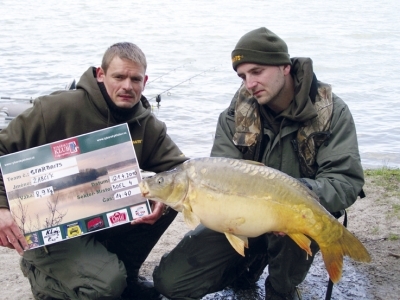 Ich rozmery boli skvostné: 40 až 60 cm, čo je naozaj raritou. Ranné dokŕmenie prišlo na rad aj napriek slabej noci, a to najmä kvôli pravidelnosti kŕmnych dávok. Práve keď sme pripravovali novú montáž, zaregistrovali sme krásny záber z diaľky. Podľa ťahu všetko nasvedčovalo, že ide o celkom slušnú rybu. Naskakujúc na čln sme zabudli na veľmi podstatnú vec na brehu: podberák. Ryba, odhadom okolo 10 kg, to sú veľmi cenné body. Robila si s nami čo chcela a my sme len bezmocnými pohľadmi do neba prosili, aby ešte chvíľu vydržala na breh do podberáka. Podarilo sa, ručička váhy sa zastavila na 9,8 kg . Pocítili sme obrovský príval radosti.