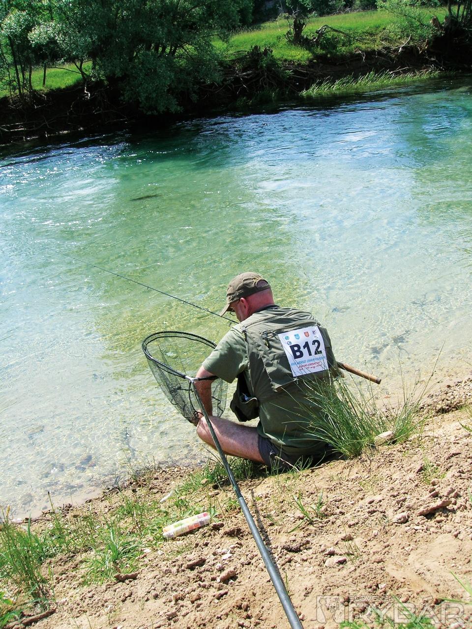 V C sektore je Juro Mrázik so mnou a s asistentom Peťom Pavlovom (Kosťom), ale podľa jeho slov mu tento typ toku nevyhovuje. Zmeniť sa to však nedá, treba sa prispôsobiť. Stred sektora tvorí hlboká jama, ktorá vyzerá veľmi lákavo, ale počas pretekov sa tam chytá len jeden domorodý pstruh. Nad jamou sú prúdne úseky, ktoré Juro nevyhľadáva, podobne ako ostatní pretekári, a všetci sa na prvé 2 – 3 kolá (zo 4 trvajúcich 1 hodinu) presúvajú pod jamu. Juro si našiel dobré miesto, ryba mu reaguje aj ju zasekáva, ale po pár otočeniach kľučkou je ryba preč. Mrzí ho to, ale ako skúsený pretekár bojuje a končí deň na 6. mieste z 13. pretekárov vo svojom sektore.