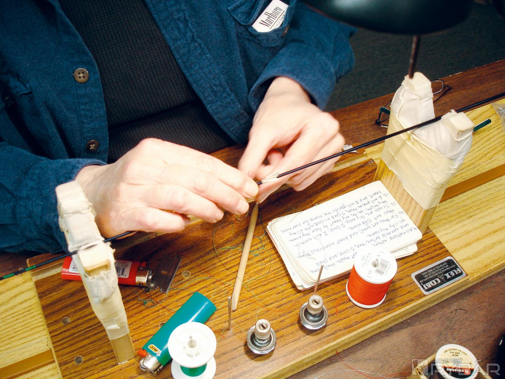 Teraz trochu skĺznem do iného žánru keď poviem, že tak nejako vyrábal svoje husle Antonio Giacomo Stradivari. Troy Jacques Steve Touronzo sa nedá zahanbiť. Z jeho rúk vychádzajú muškárske nástroje, na ktorých vyhrávajú rybársku muziku mnohí svetoví prominenti, členovia kráľovských rodín. Každý jeden kúsok sa robí na objednávku, čakacia doba sa pohybuje od troch do štyroch rokov. Držal som v ruke ten skvost, nemôžem ho nazvať inak, so šestkovou akciou a nič dokonalejšie vypracované, čo sa týka rybárčenia, som ešte nevidel. Možno bol trochu ťažší ako grafitový, ale tá dôstojnosť a elegancia, ladnosť pohybu mu dávajú neobvyklú ľahkosť a iskru. Určite rozbúcha srdce každého vyznávača „fly fishing-u“. Viem, že raz bude môj a spolu odohráme nejeden úspešný muškársky koncert. Už teraz sa neviem dočkať.