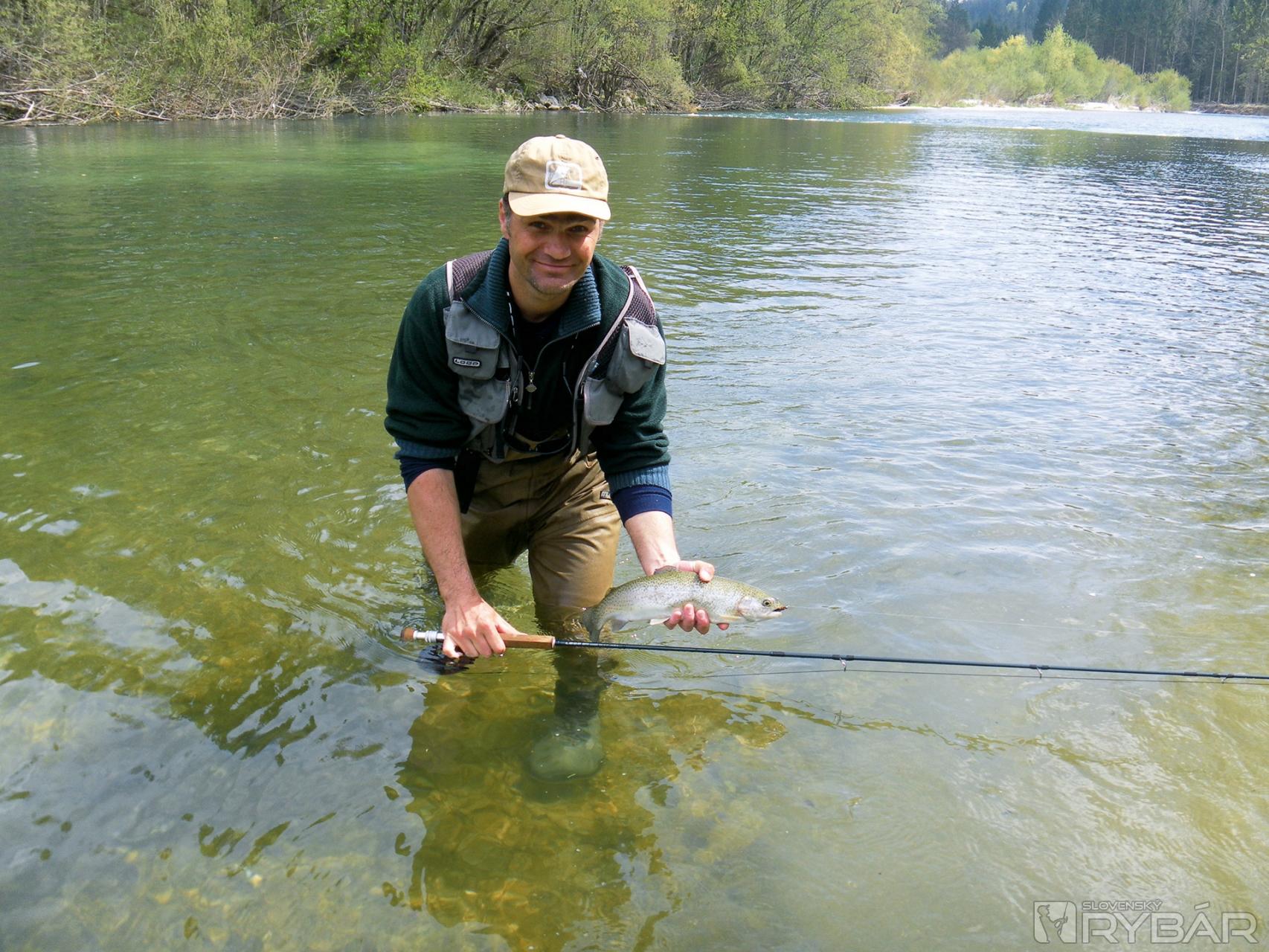 Postupujeme ďalej po prúde až k spomínanej hlbočine, kde sa Sáva mierne zatáča a hlbočina pokračuje ľavou stranou brehu. Na tomto mieste máme najviac záberov od krásnych dúhakov, ktoré sú napriek studenej vode neskutočne bojovné. Mnohokrát šnúra mizne a z navijaka sa odtáča oranžový backing. Krásne výskoky dúhakov, ktorým sa darí pretrhnúť aj 0,25 mm fluorokarbón.