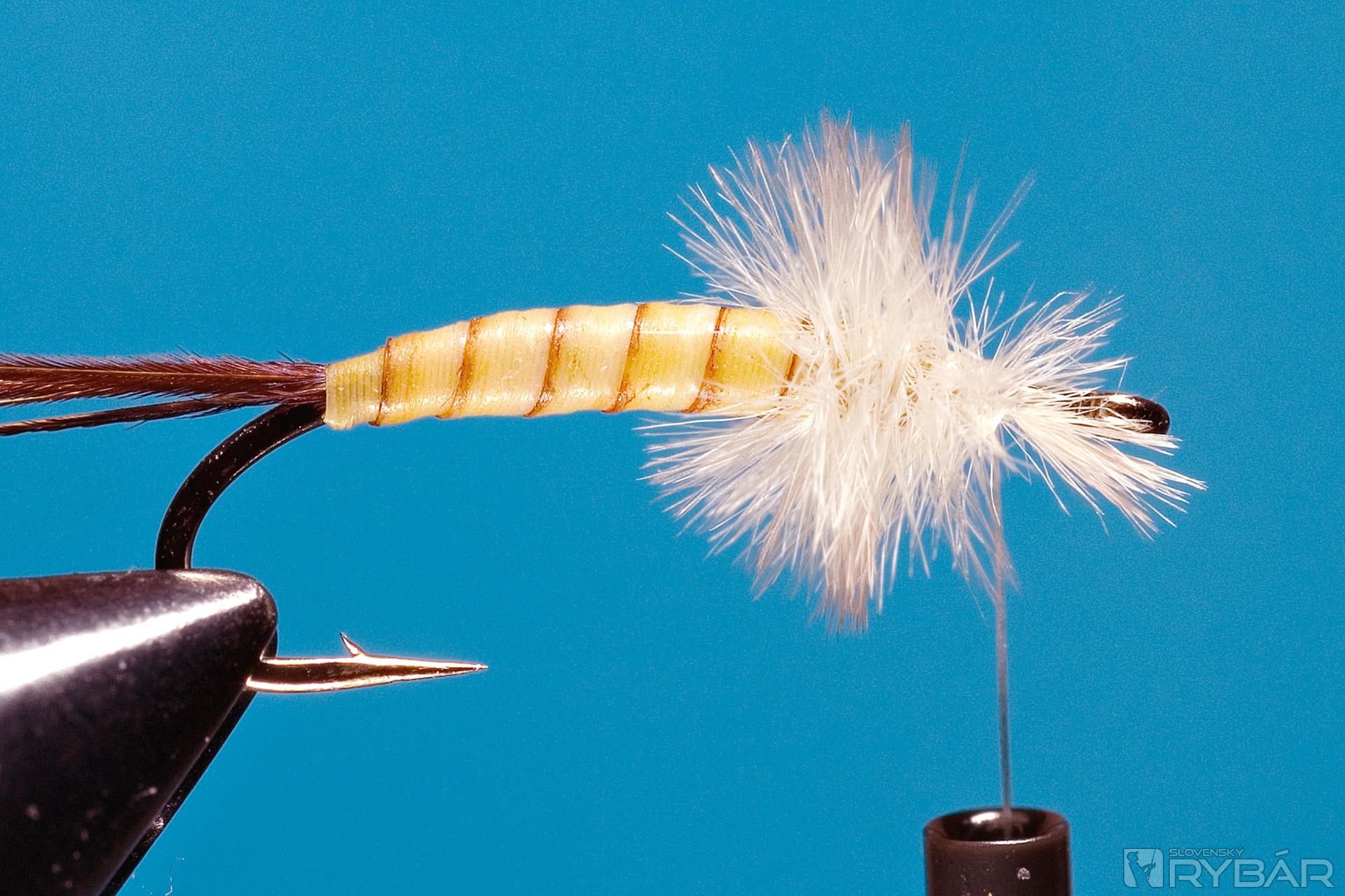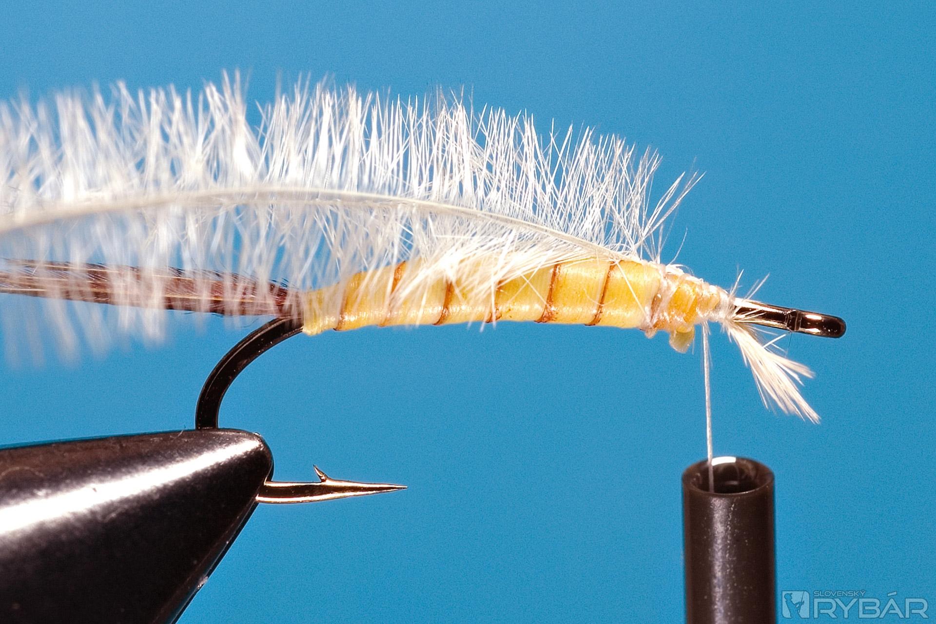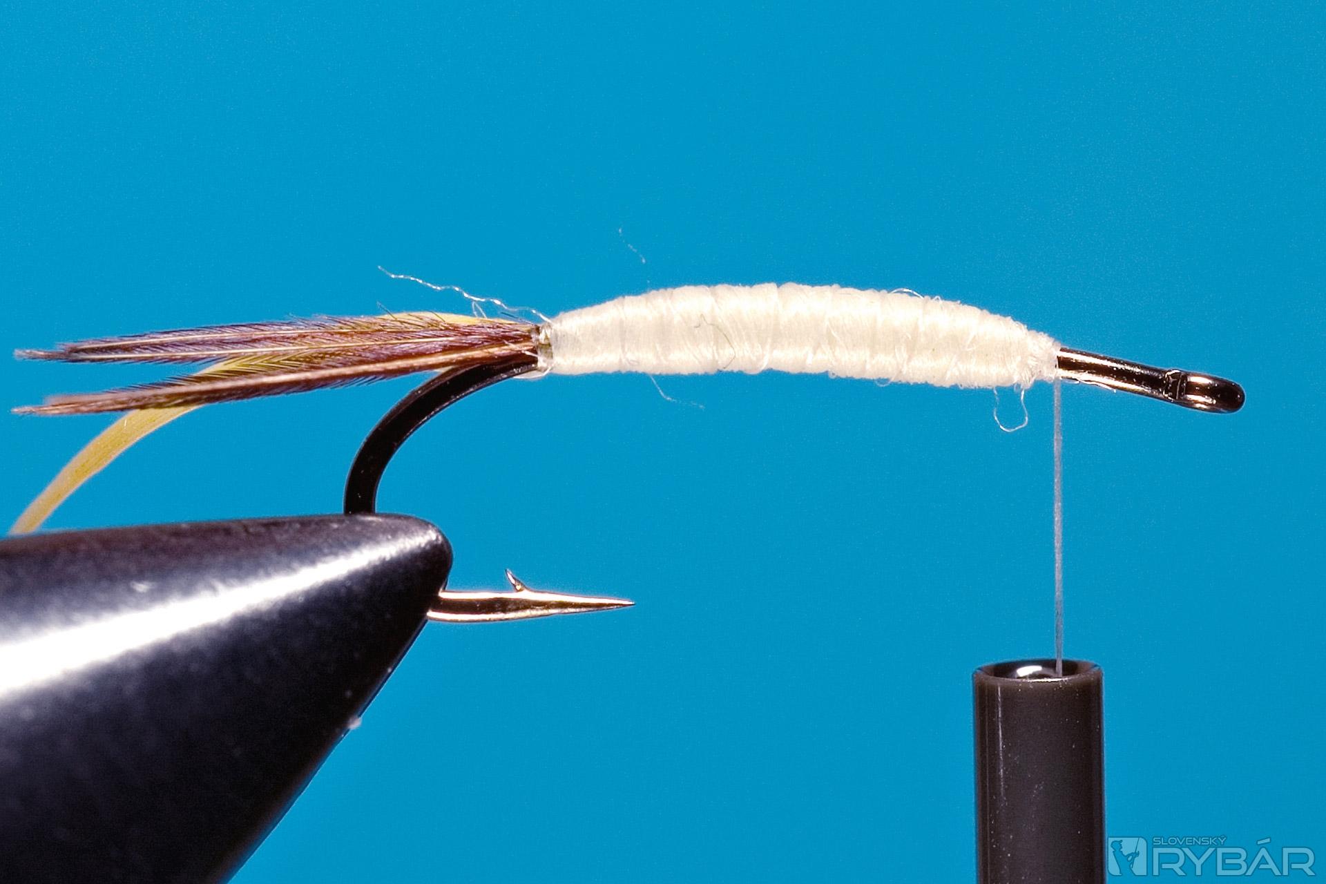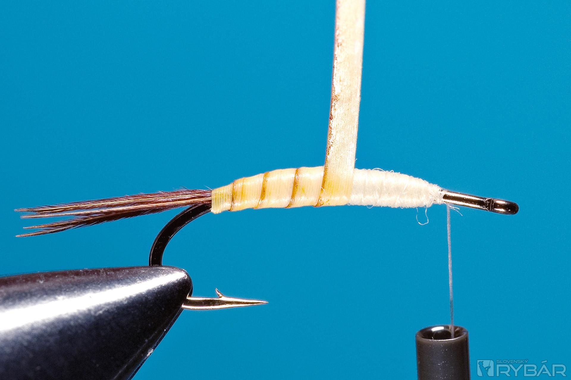 Upevníme syntetické body quills a vyviažeme telíčko z hrubšej nite.