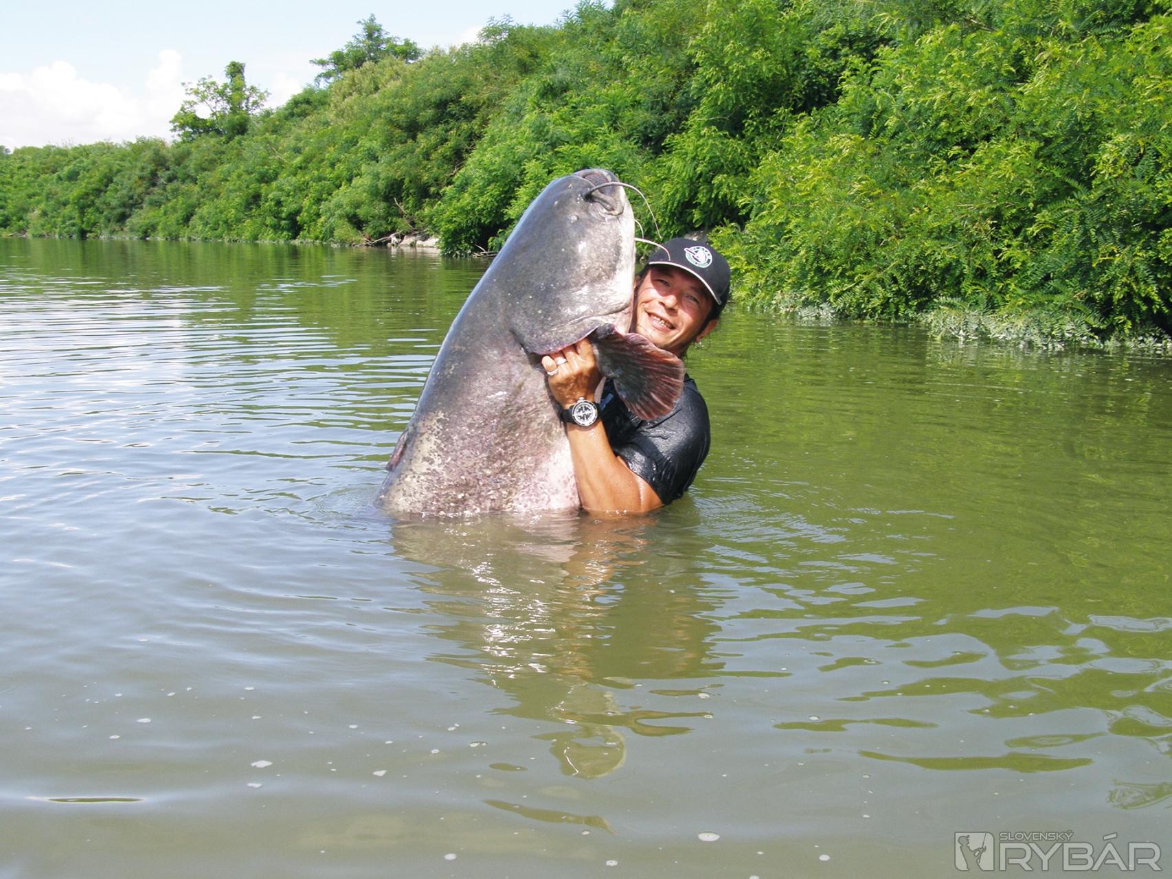Práve vyvážame kaprový prút. Je asi sedem hodín ráno. Vyzerá to na pekný slnečný deň... Odrazu počujem toľko očakávaný zvuk rolničky. V stotine sekundy otáčam pohľad smerom k sumcovým prútom na brehu. Jeden z mojich prútov sa dáva do pohybu smer hladina! Okamžite otáčam čln. Sme asi 30 metrov od brehu a ja ako v polosne vnímam až posledné tri skoky k prútu. Stíham iba zakričať na syna, ktorý v polospánku vychádza z bivaku: „Ber kameru!“ S veľkými ťažkosťami vyberám prút zo stojanu a rozbehnutá šnúra sa mi okamžite bolestivo zarezáva do prsta. Pokus o akýkoľvek zásek je bez najmenšej šance... žily na rukách postupne navierajú na prasknutie. Nie pomaly. Všetko sa to deje neskutočne rýchlo. V tej chvíli nevnímam bolesť v pažiach, nevnímam vypätie, aké podstupujem, je to ako inštinkt, ako keď človek zachraňuje človeka a je v tej sekunde schopný vyvinúť nadľudskú silu. Silu, ktorú v sebe pri bežných činnostiach nenájde. Dozaista ju má na svedomí adrenalín. Jeho vyplavenie do krvi pociťujem ako hnací motor. Nepočujem, nevidím, nevnímam a predsa som tu celým svojím telom, každučkým nervovým zakončením. Tam dole tancuje azda diabol. V kŕči sa snažím dobrzďovať naplno utiahnutú cievku multiplikátora, toto prút či navijak nemôže vydržať! Sekundy, dokonca minúty plynú a ja mám pocit, že namiesto oslabovania ryba iba dostáva chuť bojovať. Plynule si kradne metre šnúry a ja sa na špici lode stávam iba štatistom. Okolo člna je ďalších sedem bójok a akákoľvek snaha o zmenu jej smeru je v tomto momente márna. Viem, že je veľký a túžim ho aspoň na okamih vidieť. Udica v niektorých momentoch veľmi pripomína mäkkú hadicu. Netuším, koľko je hodín, netuším ani, ako dlho toto divadlo trvá. Špička prúta pravidelne mizne pod vodnou hladinou, aby sa vzápätí na stotinu sekundy opäť vynorila. Ďalší nápor! „Čo je toto za obluda??!!!“ Mohutný pás bublín stúpajúcich k hladine nanovo roztáča diablov kolotoč. Ak sa toto okamžite neotočí v môj prospech, opustia ma sily. Rúčku prúta si už nevládzem opierať o bok, skúšam si ju prechytiť, chvíľku ju opieram medzi nohami, ani v jednej polohe už nevydržím dlho. Z brehu to musí vyzerať komicky. Ruky stiahnuté v kŕči a hánky biele ako sneh. Pomaly sa mi to monštrum darí otočiť a po ďalších nekonečných minútach ponorka víri hladinu pri člne. Ryba je neskutočne hrubá, vysoká, jej dĺžku si netrúfam odhadnúť. Po ďalších nekonečných minútach ju dostávame k brehu. Na prvý pohľad sa mi sumec zdá strašne krátky a odhadujeme mu sotva 2 metre. Z tohto omylu nás vyvádza meter, keď číslo 200 cm zastavuje ešte len pri žiabrach. K tlame chýba ďalších 36 cm!!!