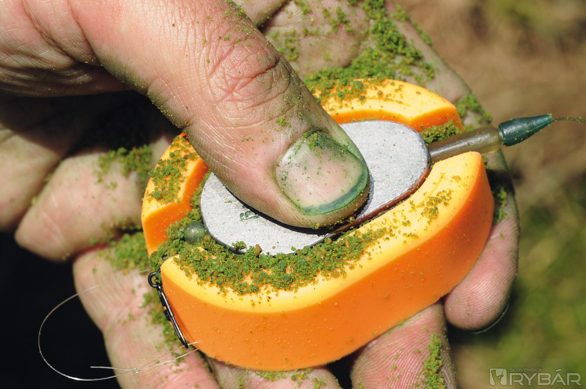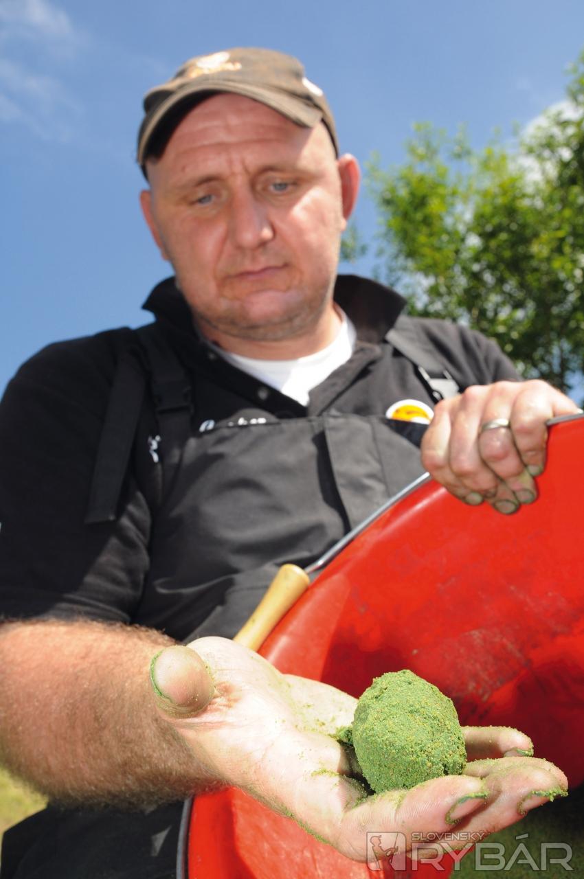 Na začiatku sezóny vnadím len čistým „metoďákom“. Dôvodom je to, že keď je na lovisku množstvo pleskáčov, kvantum návnady ich môže vyplašiť. Ak sa po 30 – 40 minútach neprejaví žiadny záber, prikŕmim 5 až 10 plných kŕmidiel; závisí to od podmienok, niekedy viac, inokedy menej. Toto robím klasickým feedrovým kŕmidlom. Vnadiaca zmes obsahuje aj partikel, napríklad kukuricu, pelety a kostné červy. Partikel nikdy nepridávam hneď, ale mám ho pripravený v osobitných nádobkách. Takto viem presne kontrolovať jeho množstvo a zloženie.