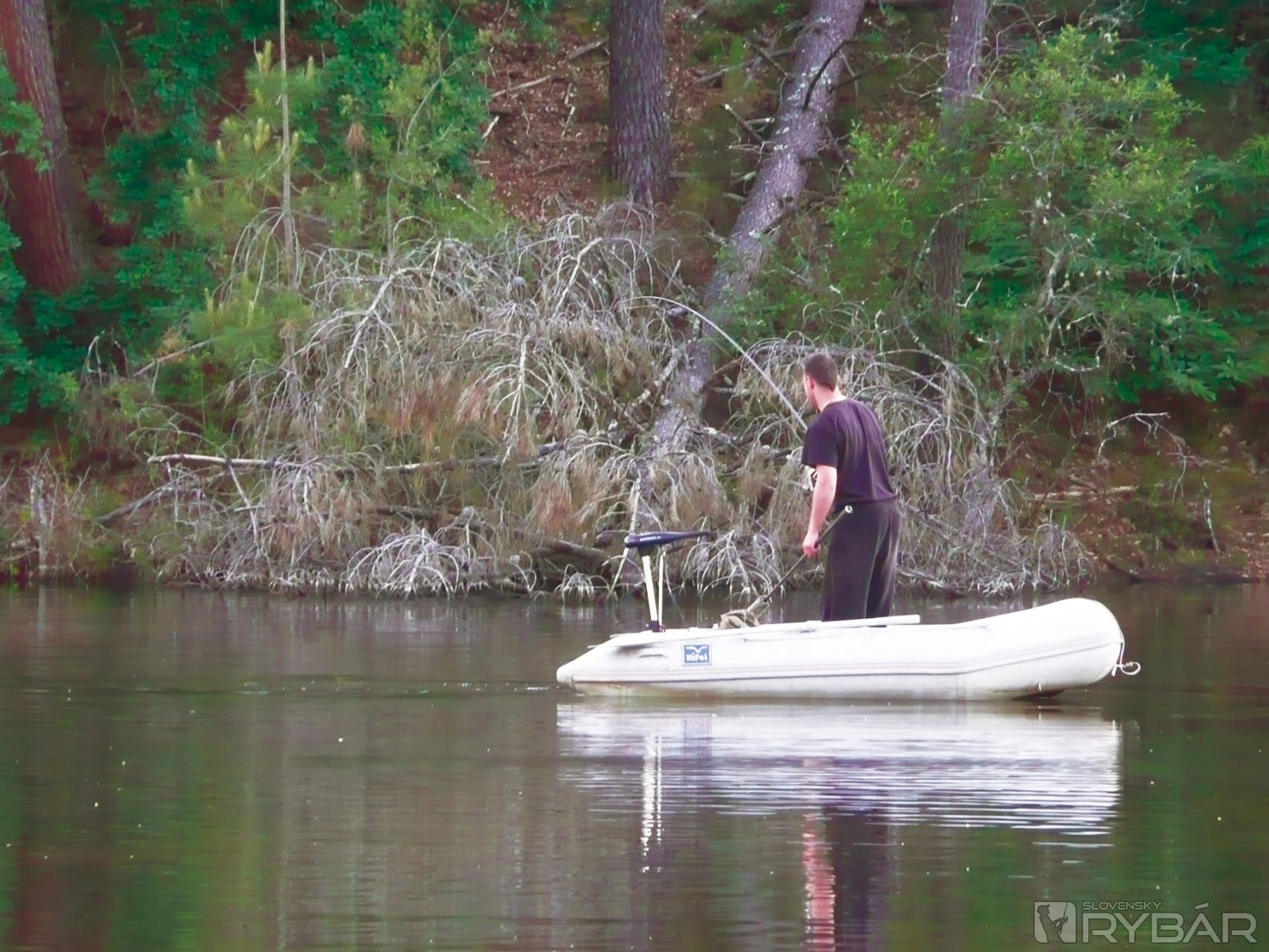 Dotiahol som cievku na kosť a pomaly cúval dozadu. Palica dostala pekne zabrať a ohnutá bola na maximum. Nedal som mu ani centimeter a oplatilo sa mi to. Po chvíľke som mohol sadnúť do člna a zdolával rybu už na voľnej vode. Trvalo aj pol hodiny, kým som mohol chytiť do rúk podberák. Bojovník mal 17,80 kg. Krásna ryba... Boj to bol fakt úžasný! Spravili sme zopár fotiek, no nebol to už taký boj ako s tými „obrami“, ktoré som lapil predtým. Fotenie bola zrazu hračka. Šup s ním späť do vody a znova vyviezť! Pred obedom sa dostavil ďalší záber. Tentokrát z miesta, ktoré som našiel včera. Scenár sa opakoval a kapor zas uviazol v prekážkach. Rozhodol som sa okúpať a potopiť sa za ním, že hádam ho odtiaľ dostanem. Opak bol pravdou. Keď som sa už konečne cez konáre dostal až k nemu, zbadal som ho. Aj on zbadal mňa, mykol hlavou a kapor približne s hmotnosťou 20 kg bol fuč. Odtrhol nadväzcovú šnúrku... Nahnevaný som sa vyškriabal na čln a išiel sa osušiť na breh. Po výdatnej večeri som si išiel pre stoličku na lovné miesto, že si pozrieme s Radkom konečne nejaký film. Chytil som stoličku do rúk a ihneď som musel chytiť aj udicu. Ďalší záber a zas v stromoch. Opäť som sa potápal, ale tentokrát som vyhral ja. Unavený a mokrý som sa mohol aspoň pochváliť so šupináčom s hmotnosťou 16,30 kg. Osušil som sa, vyviezol a dostal som ešte jeden záber. Nanešťastie sa ryba vypla. O polnoci prišla silná búrka, tak som čakal, čo nám prinesie.