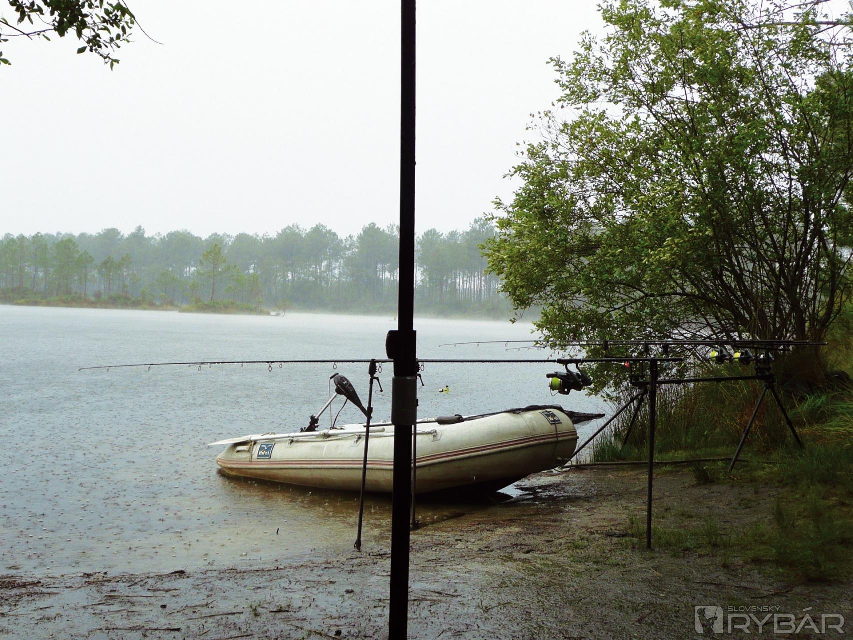 Nadišla sobota, za mnou bol už týždeň úžasnej rybačky a ešte jeden týždeň mám pred sebou. Už deň dopredu sme mali hlásenú zmenu počasia, že príde ochladenie, búrky a dážď. Ochladilo sa na 20 °C a vládlo prehánkové počasie. Takto to vraj má byť až do pondelka. V noci to prišlo. Stretli sa nad nami dve silné búrky, lialo a blýskalo sa do štvrtej do rána, potom už iba dážď a zamračené. O pol deviatej ráno ma do nepriazne počasia vytiahla dlhá forma riadkača s hmotnosťou 12,80 kg a do večera som už žiadny záber nedostal.