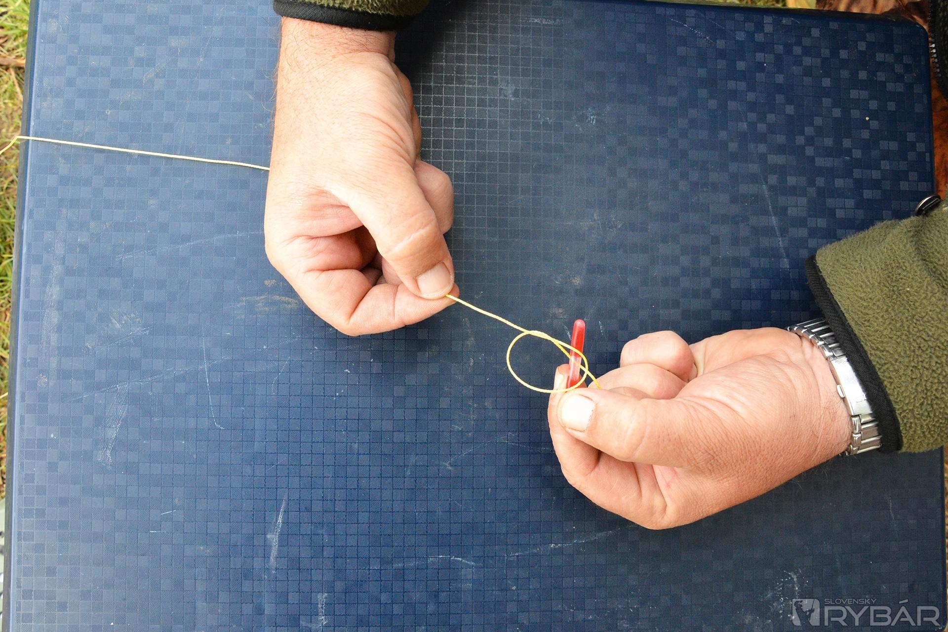 Možno sa to niektorým bude zdať zložité. Takmer každý rybár jednoducho karabínku otvorí, vloží očko a karabínku zavrie. Priznajte sa, koľkí z vás to tak robia? Skoro všetci a nie je to správne! Treba aj na tomto konci spraviť slučku a až potom vložiť do karabínky a stiahnuť. Určite ste si okamžite dali otázku, že prečo tak komplikovane. Je to kvôli tomu, lebo očko na nadväzci sa nám nebude voľne pohybovať po karabínke. Ľahko sa môže stať, že očko sa nám zachytí o zámok na karabínke a pri záseku sa jednoducho karabína otvorí. A ako sa to skončí, tak to si ľahko domyslíte. A ďalšiu výhodu to má v podstatne menšej šanci, že sa nám nadväzec zamotá do karabínky.