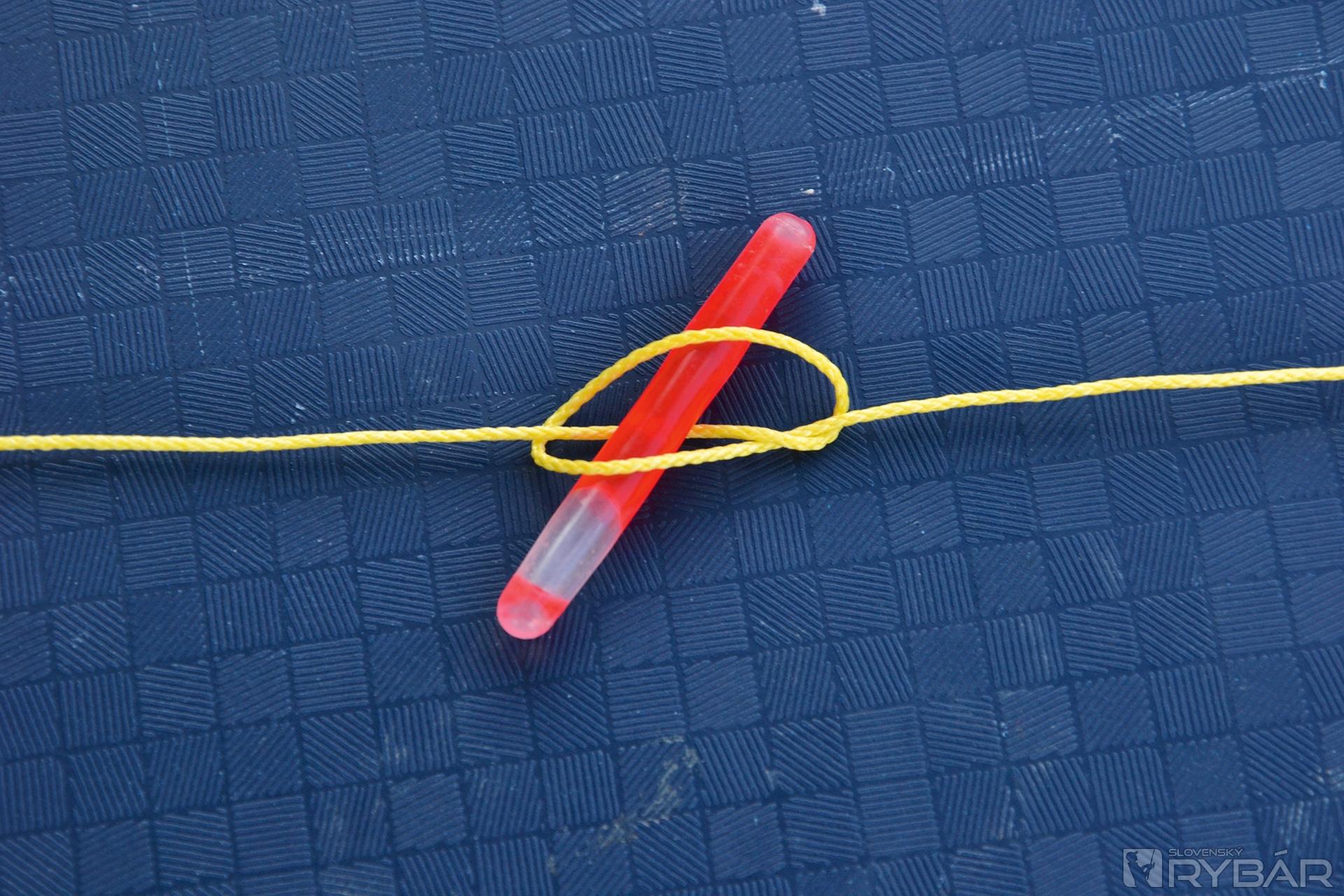 No a ako to praktizujem ja? Najradšej ako zarážku mám použité chemické svetlá, ktorých má každý z nás určite dostatok. Nasledujúce kroky môžeme urobiť v predstihu na brehu alebo priamo na mieste pri spúšťaní montáže. Olovo odhadom spustím do požadovanej hĺbky a v mieste, kde plánujem dať zarážku, tak si spravím stratený uzol (pochopiteľne, nad plavákom), do ktorého len vsuniem chemické svetlo a zatiahnem. V tomto prípade je plavák priebežný a pri zdolávaní má tendenciu sa posunúť až k olovu.