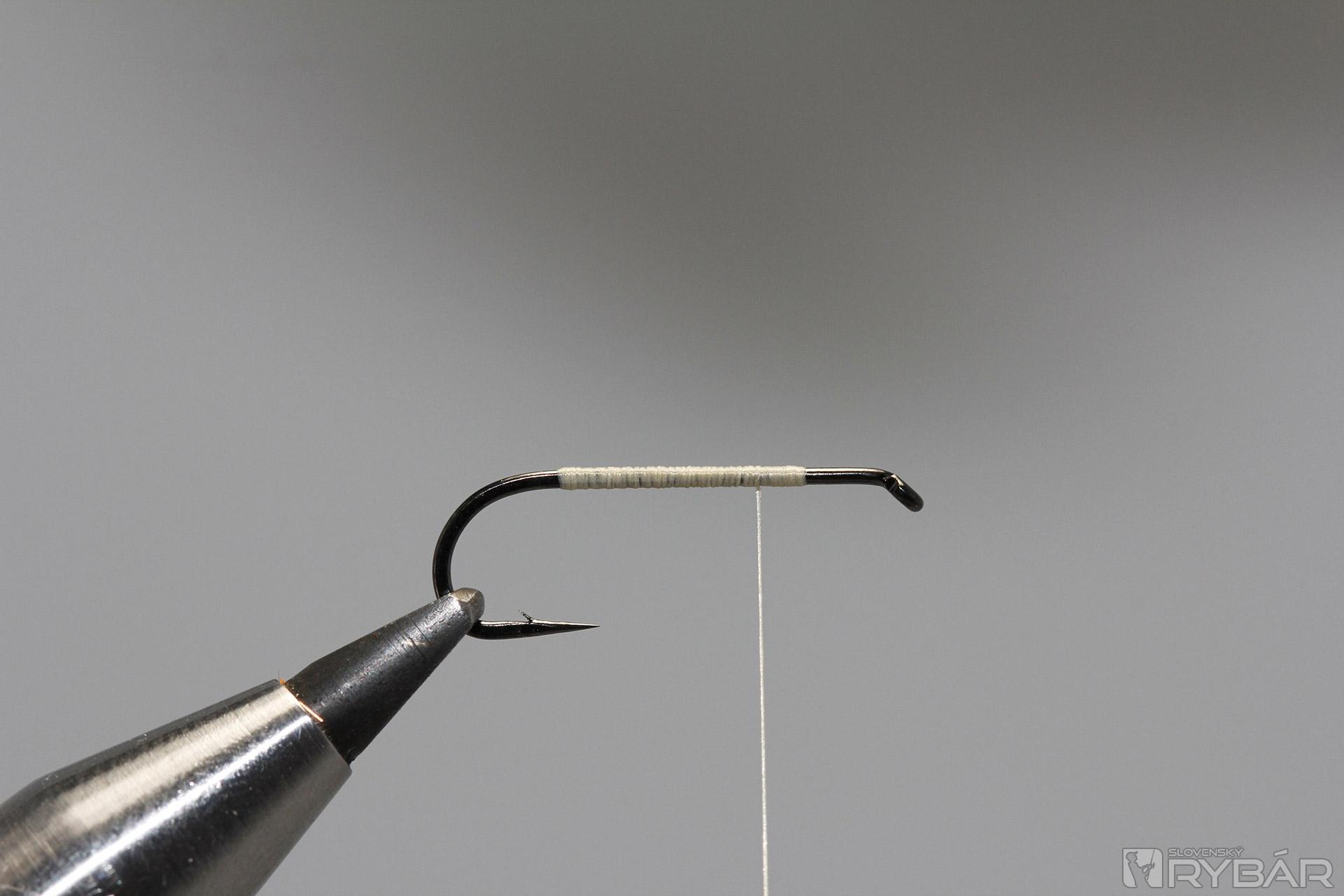 Háčik upneme do zveráka a naviažeme viazaciu niť.