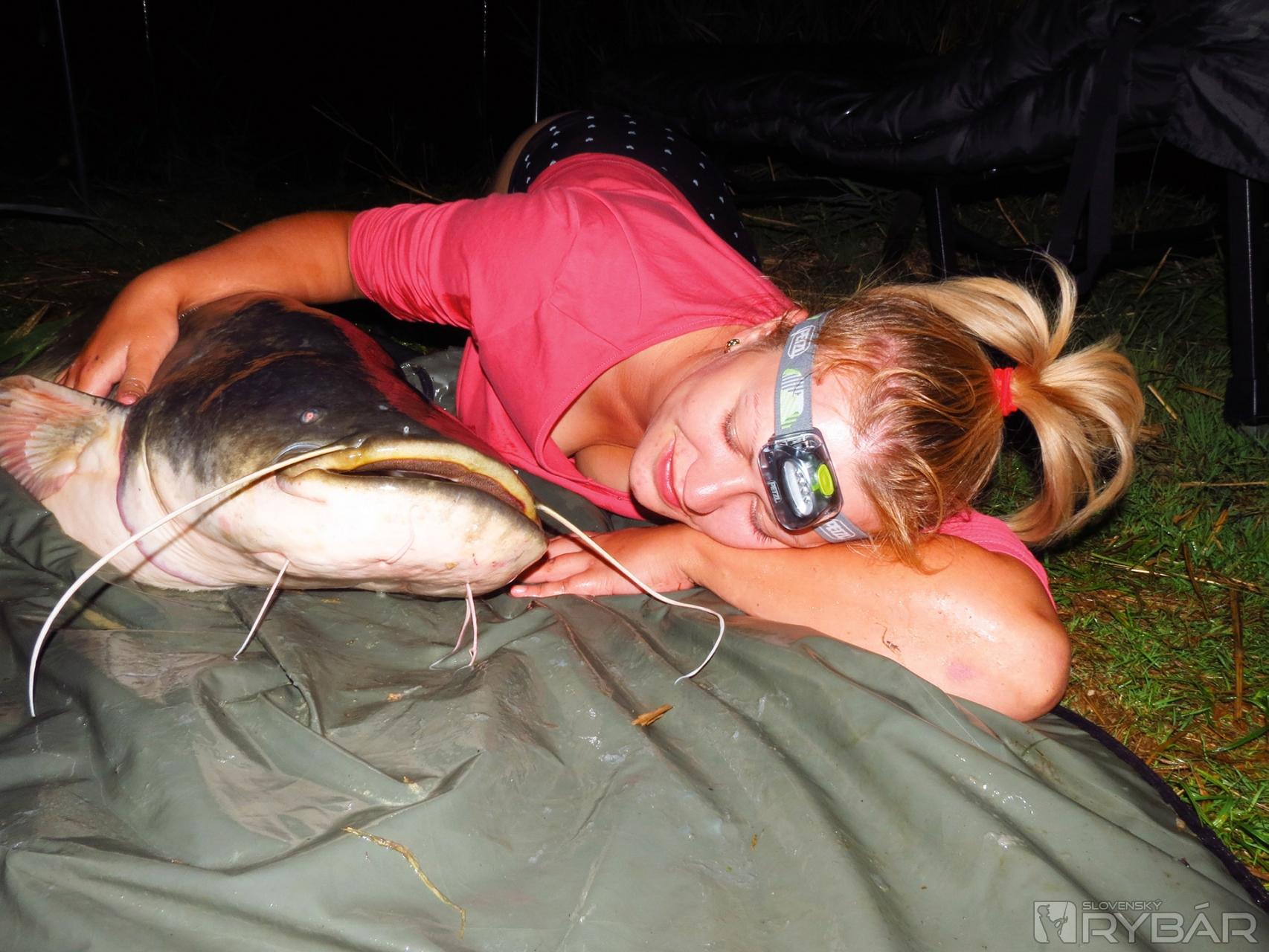 Po chvíli sa na hladine ozýva obrovský špľachot, teraz sa z dvadsať kilogramového kapra stáva amur okolo tridsať kilogramov. Veľmi sme sa na druhý deň zabávali na našich odhadoch, ktoré sme strieľali do tmy aj keď sme rybu nevideli. Keď silon naznačil, že ryba je blízko brehu, vchádzam do vody, ale aj z nej rýchlo s podberákom v ruke vycúvam. Veľká hlava a dlhé fúzy nám všetkým urobili z noci jasno. Tak preto ten oneskorený záber a ťažká zdolávačka. Rovných 163 cm našej radosti. Pár fotografií a púšťame ho naspäť do vody. Ráno sme si vypočuli pár ponaučení od miestneho rybára, ale v tú noc by tej rybe neublížil nikto z nás.