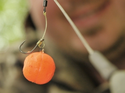 Celá montáž sa nahadzuje väčším oblúkom, aby nadväzec s nástrahou poľahky „vyletel“ po kmeňovom nadväzci až po gumový stoper. Po dopade na hladinu počkáme 5 sekúnd, kým sa nástraha ustáli v nastavenej vzdialenosti od olova a veľmi opatrne došponujeme silon. Tak, aby sa len jemne opieral o vodné rastlinstvo a fluoro pop-ka lákavo sedela presne na okraji vodného rastlinstva. Zavesíme ľahký swinger a môžme do okolia prihodiť pár hrstí drobných 3-6 mm naboostrovaných peliet raketou alebo spombom a pasca je pripravená.
